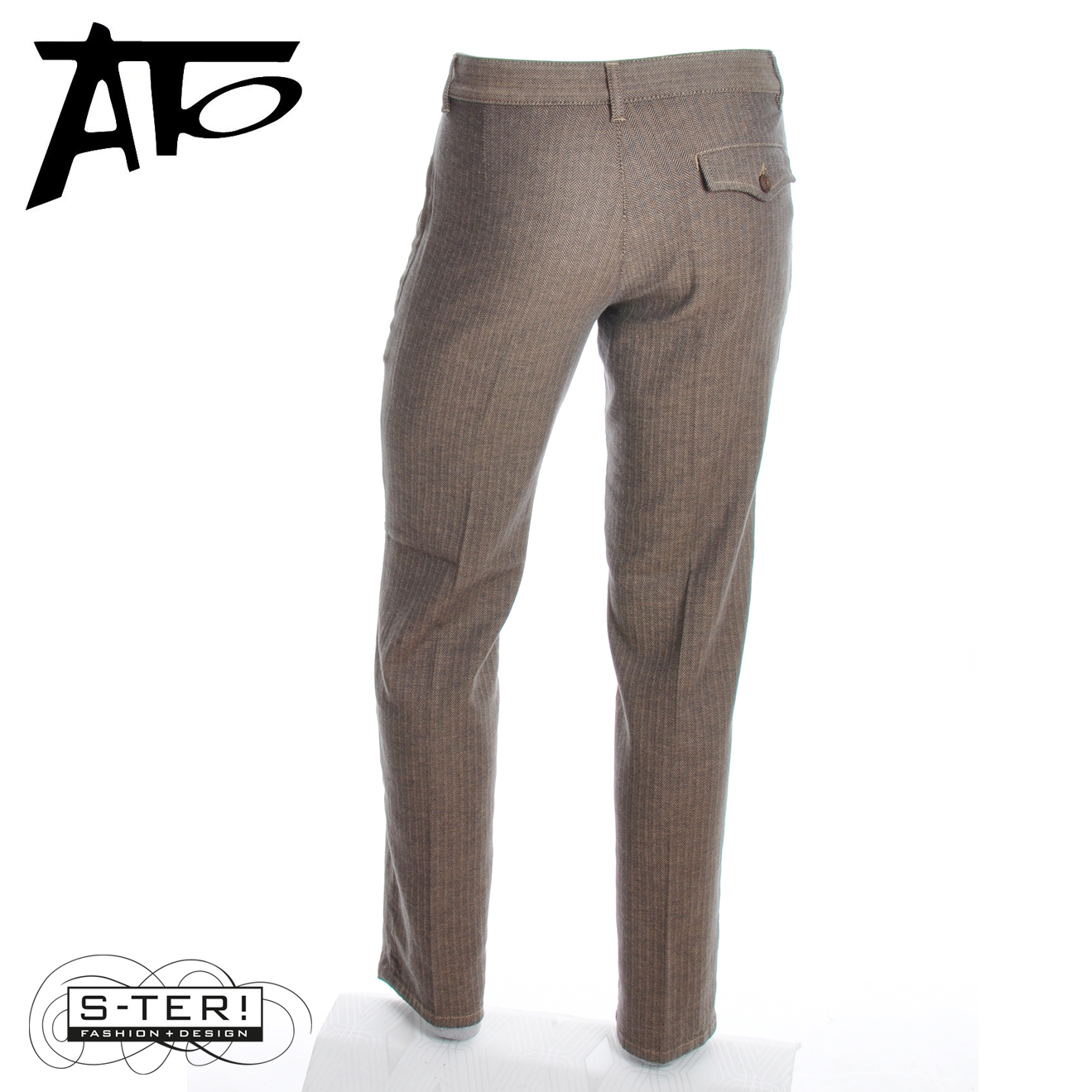 Deze fijne broek is een model dat eigenlijk voor de heren is maar ook bij vrouwen prima zit. Deze heeft steekzakken voor en paspelzakken achter en is een vrij hoog model in de taille met rechte pijpen . Hij is gemaakt van fijne heerlijk zachte katoenen stof met mooie structuur en veel stretch erin en ze zijn er ook in verschillende lengte maten evt na te bestellen.