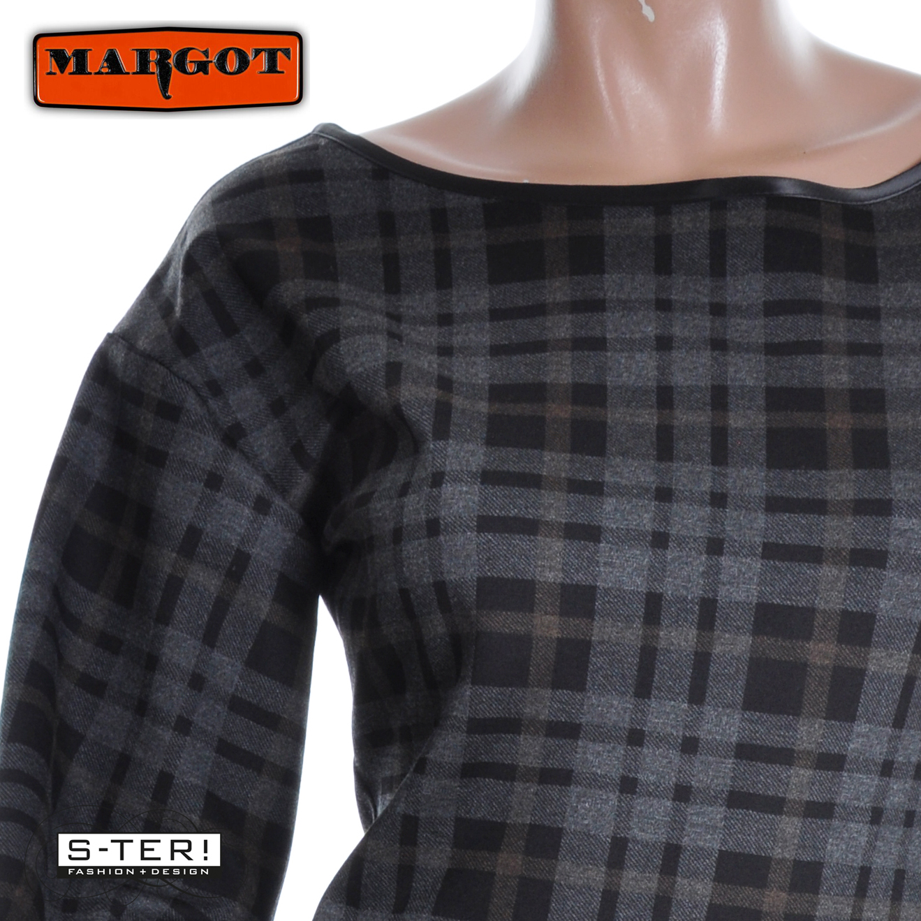 Deze jurk is mooi klassiek. Het is een model dat vanaf de taille in een A-lijn loopt en het heeft een wijde ronde hals en lange mouwen. Natuurlijk is hij van fijne rekbare tricot met een ruitje.