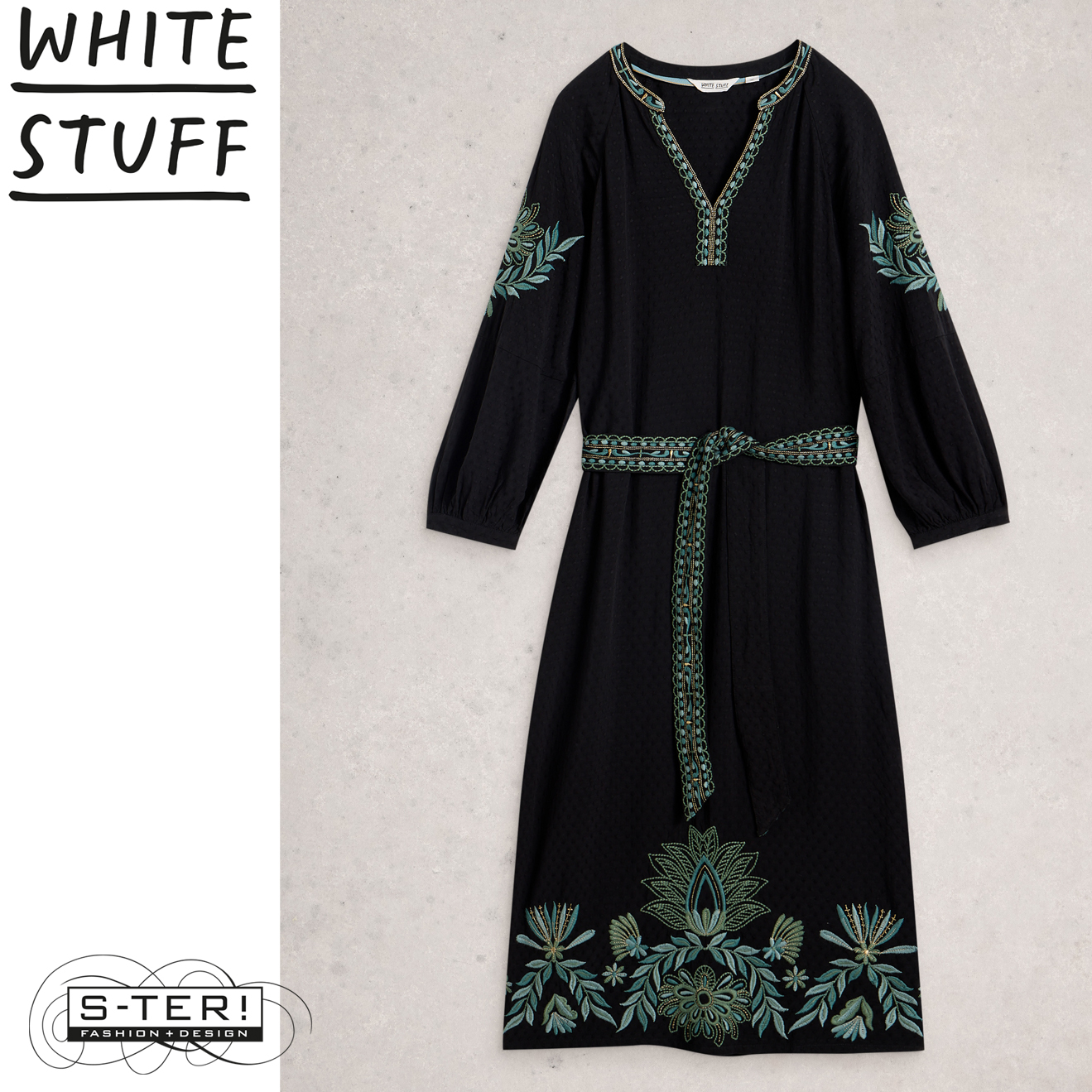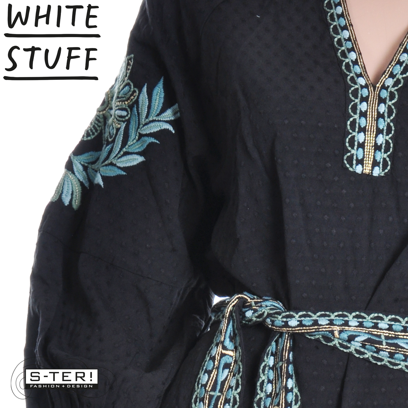 W18.31 WHITE STUFF EVIE EMBROIDERED DRESS BLK MLT 444721