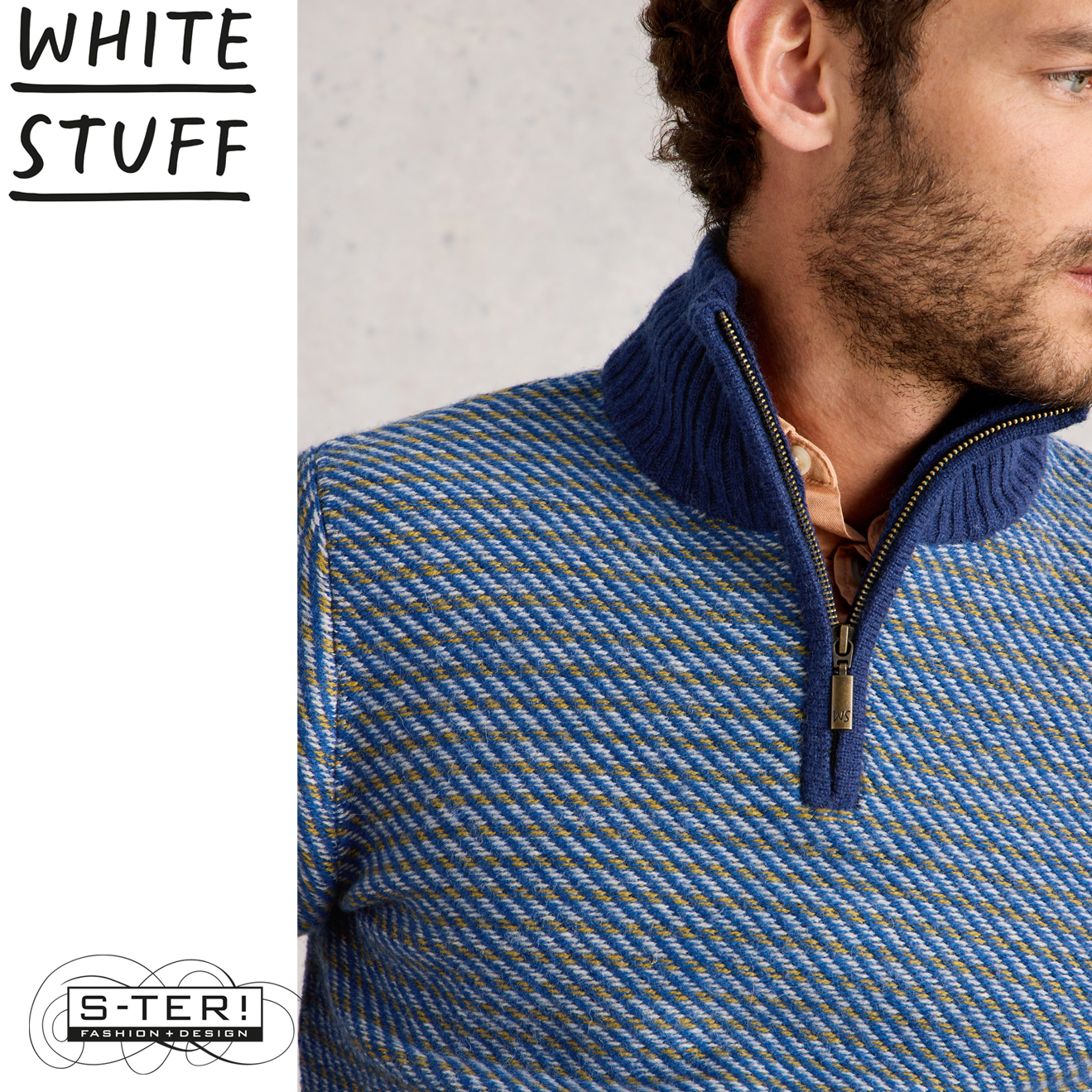 W18.47 WHITE STUFF SELBY STRIPE FUNNEL NECK BLUE MLT 444570