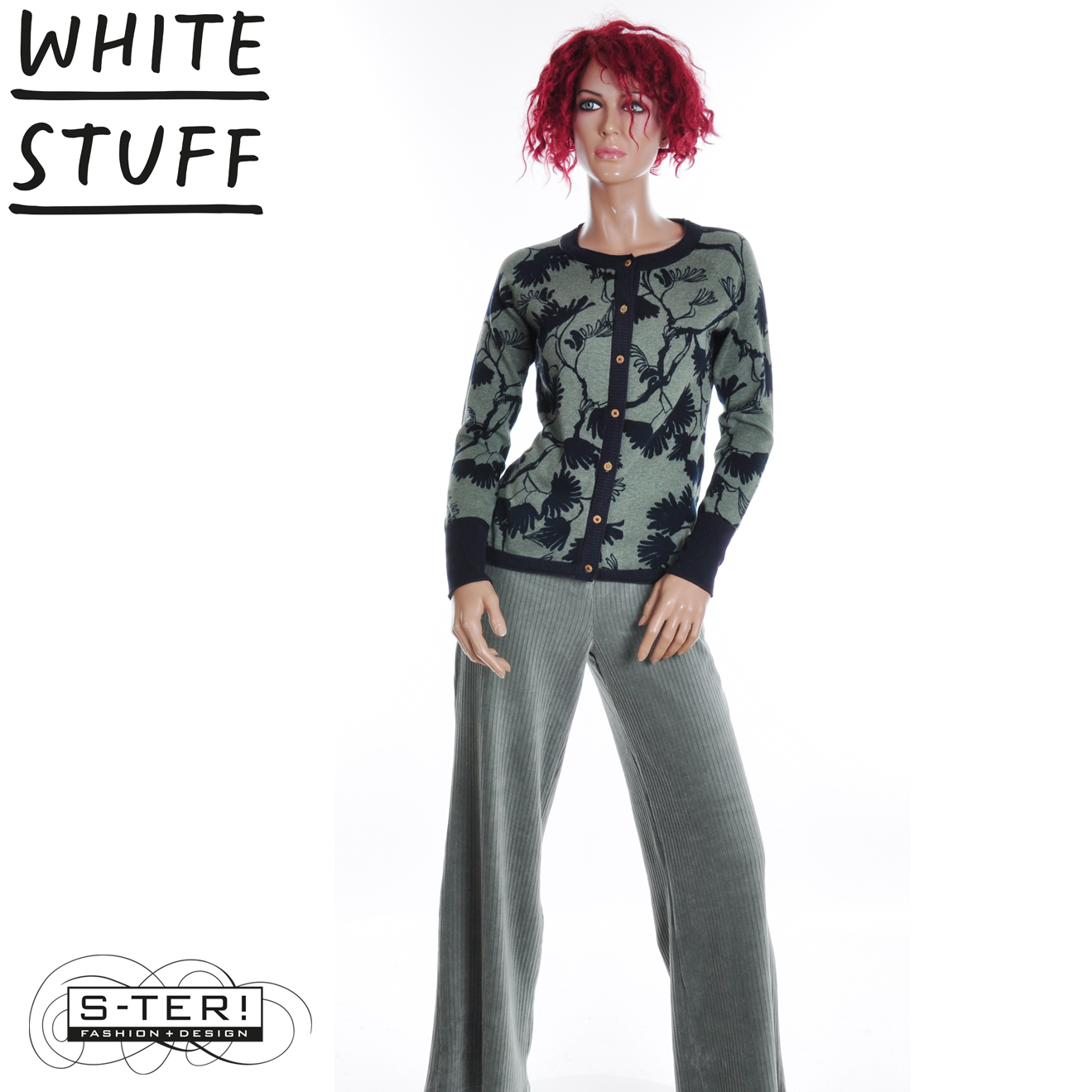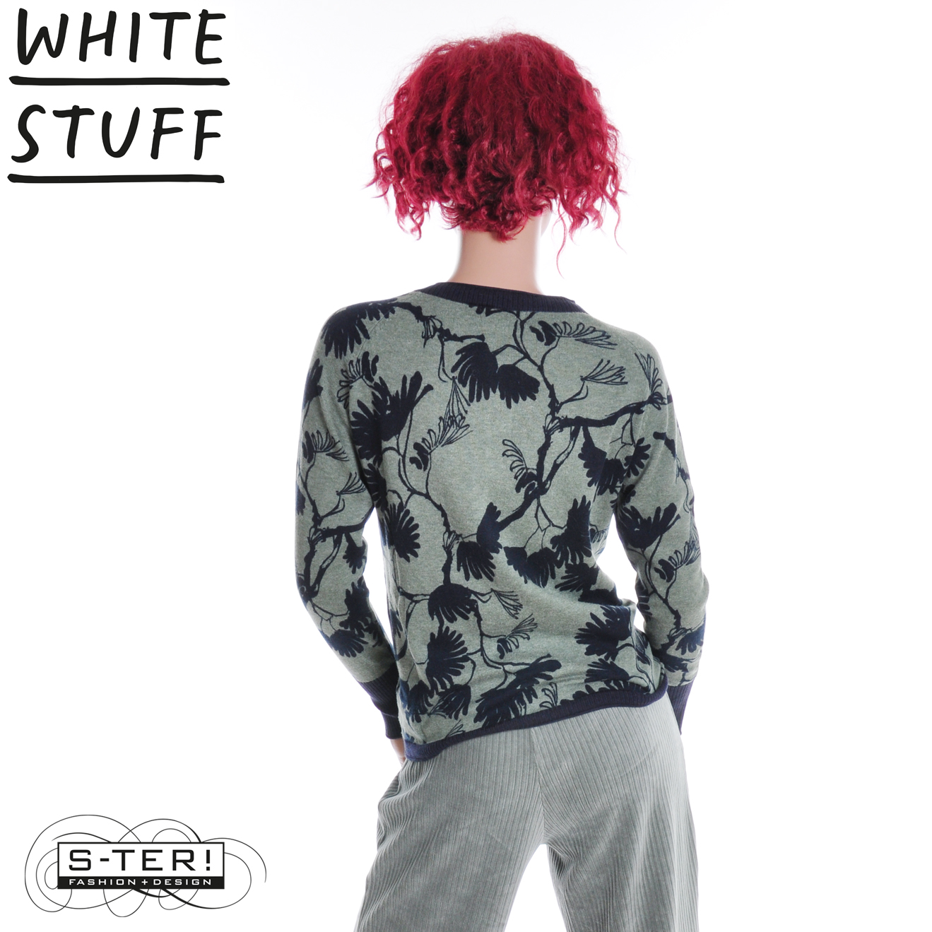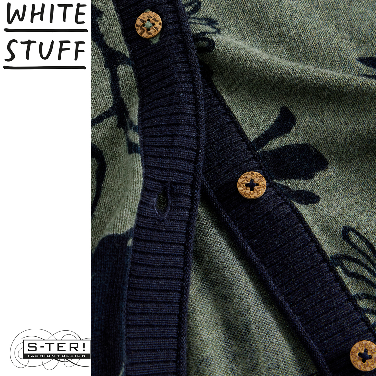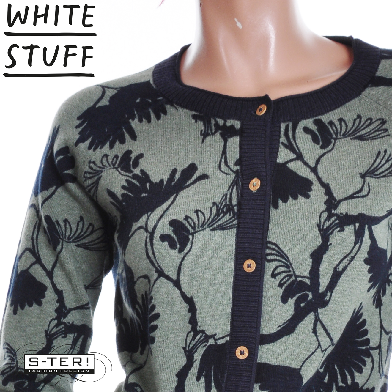 W18.8 WHITE STUFF LULU PRINT CARDI GREEN PRINT 444551