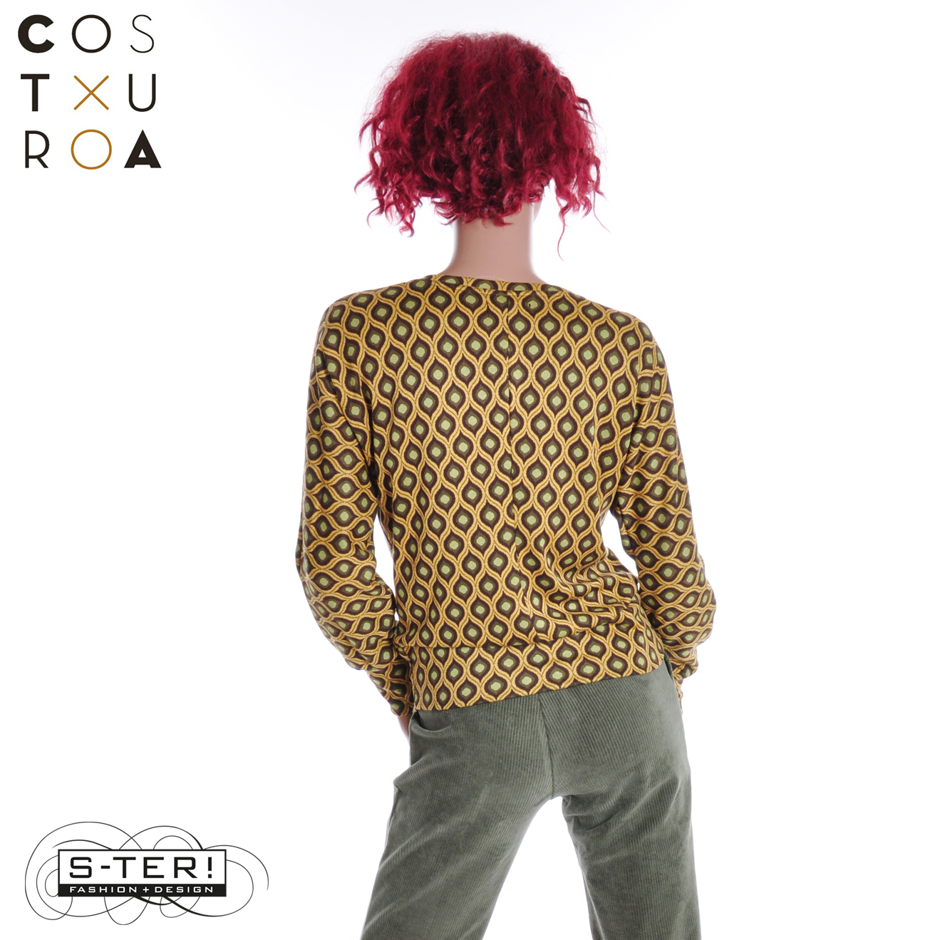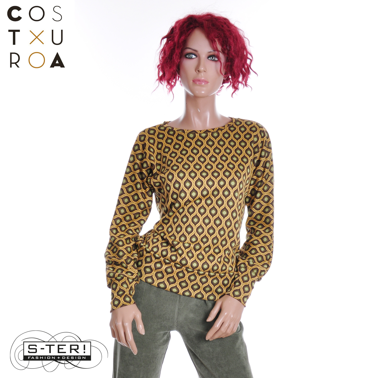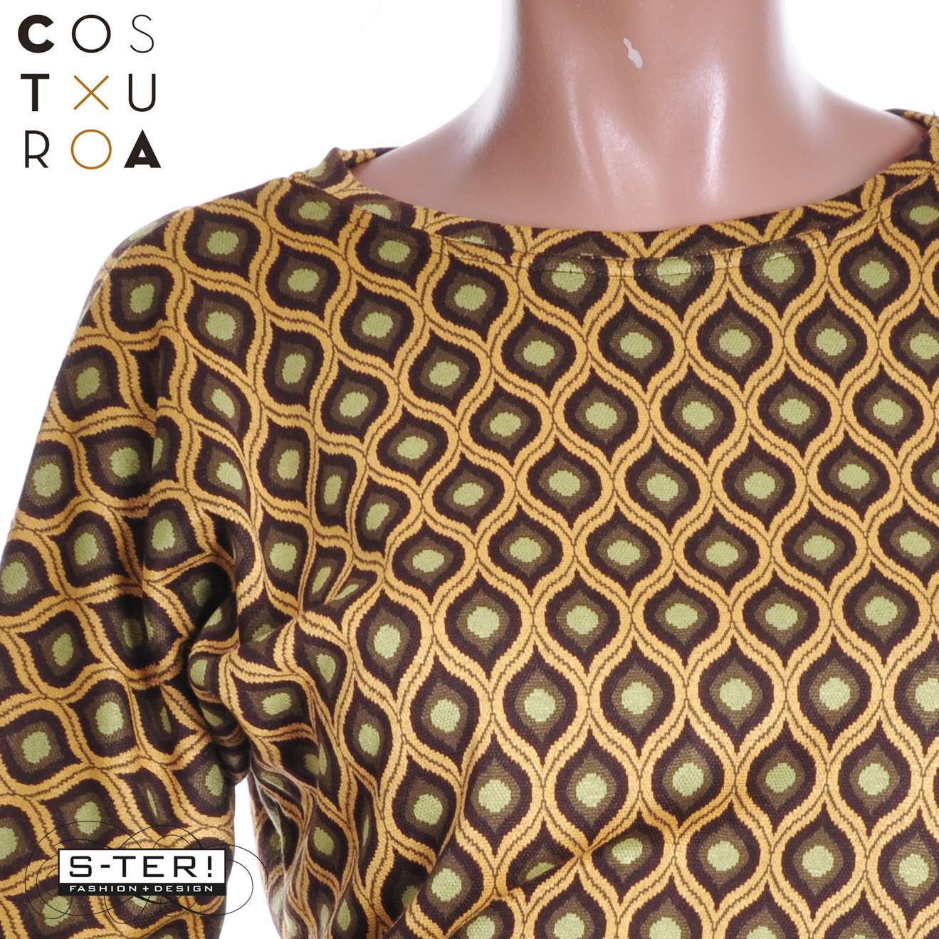 Deze mooie top heeft een Ronde hals en aangeknipte mouwen. Het is gemaakt van rekbare ietsje dikkere jacquardstof. Costura is designed en gemaakt in Berlijn en dus een klein en duurzaam merk.