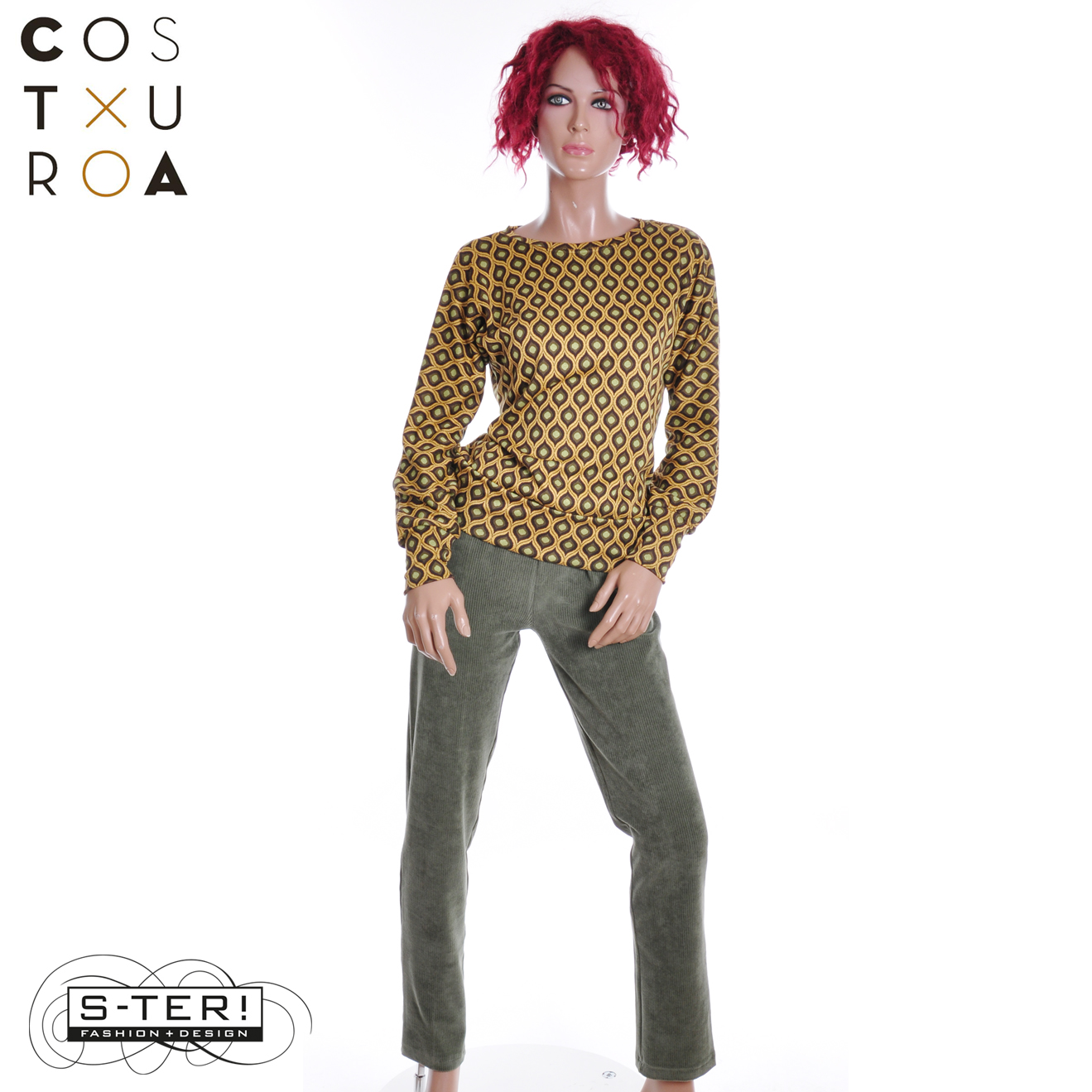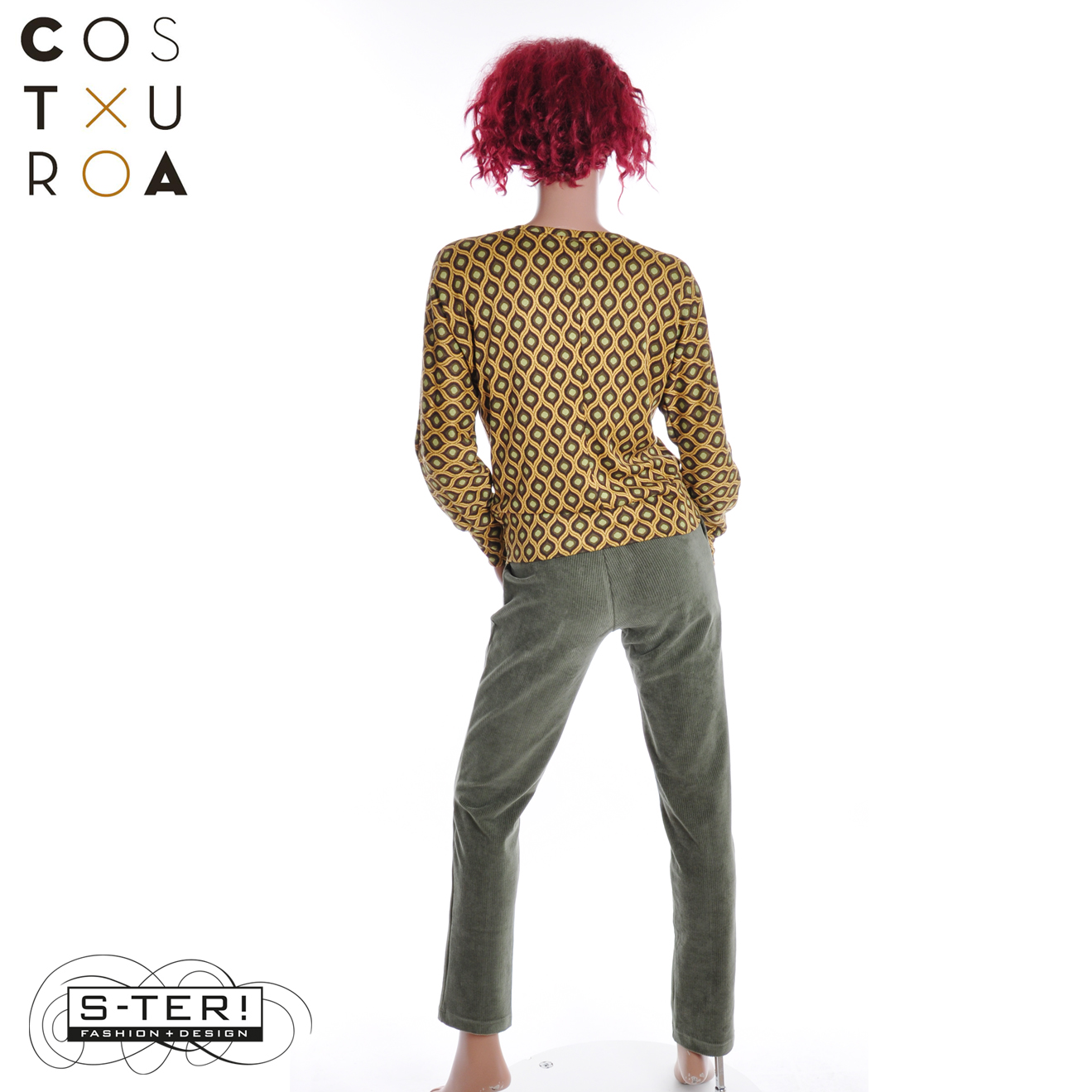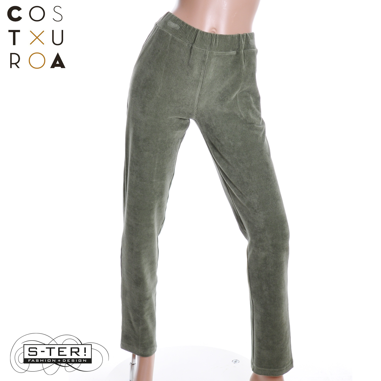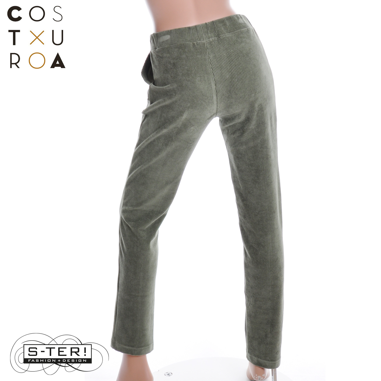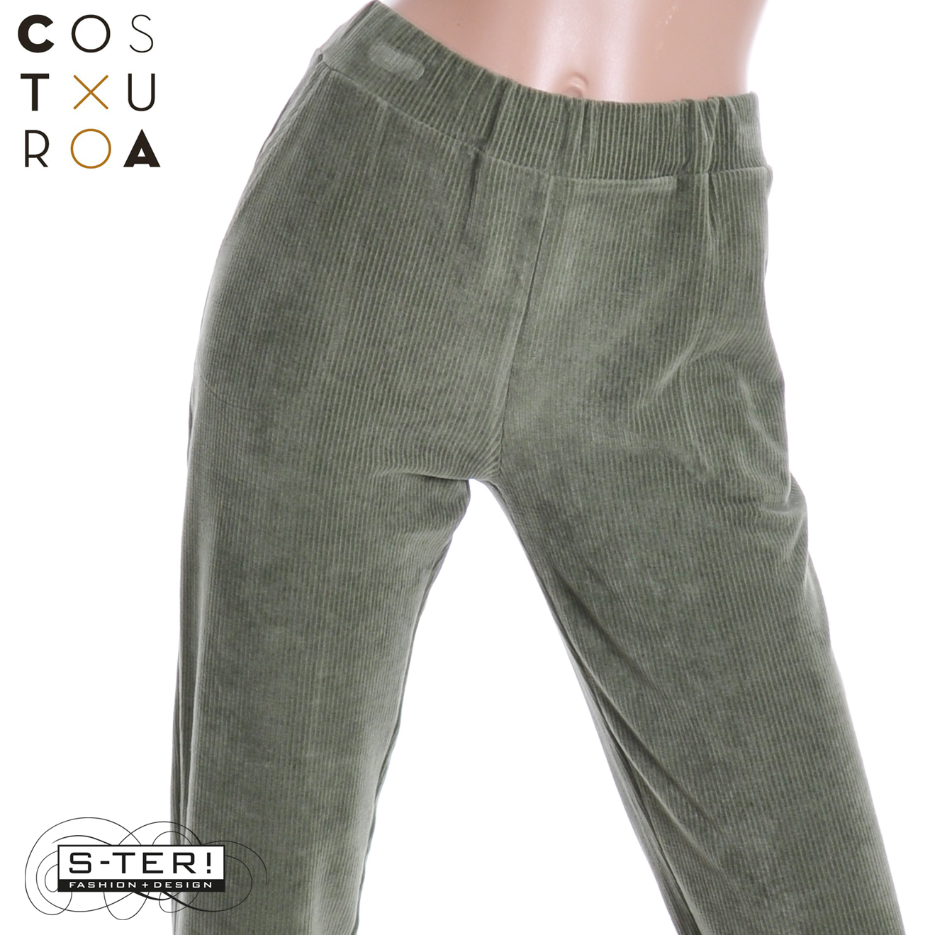 Deze mooie broek heeft rechte vrij smalle pijpen, steekzakken en een elastische tailleband. Het is gemaakt van rekbare ietsje dikkere velours stof. Costura is designed en gemaakt in Berlijn en dus een klein en duurzaam merk.