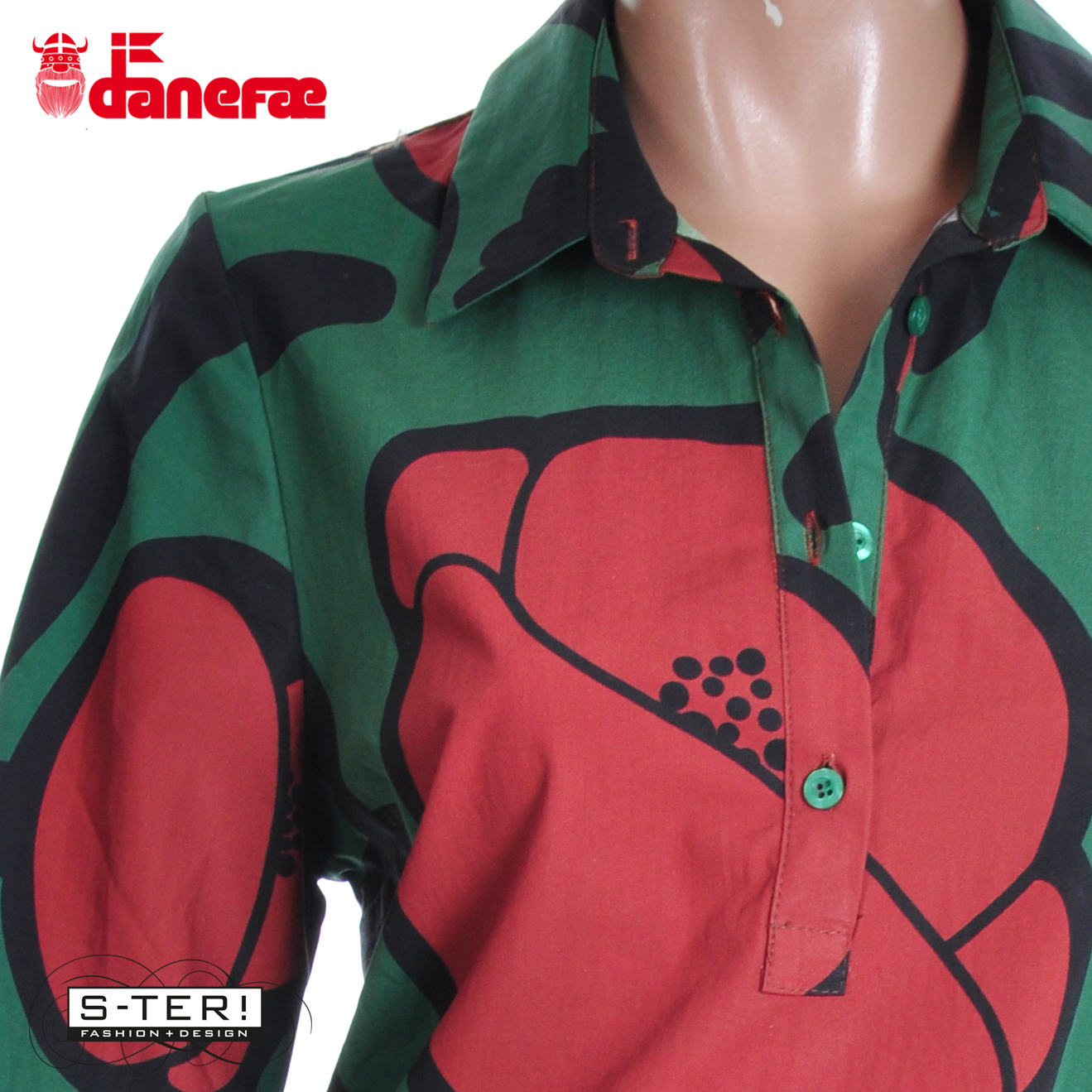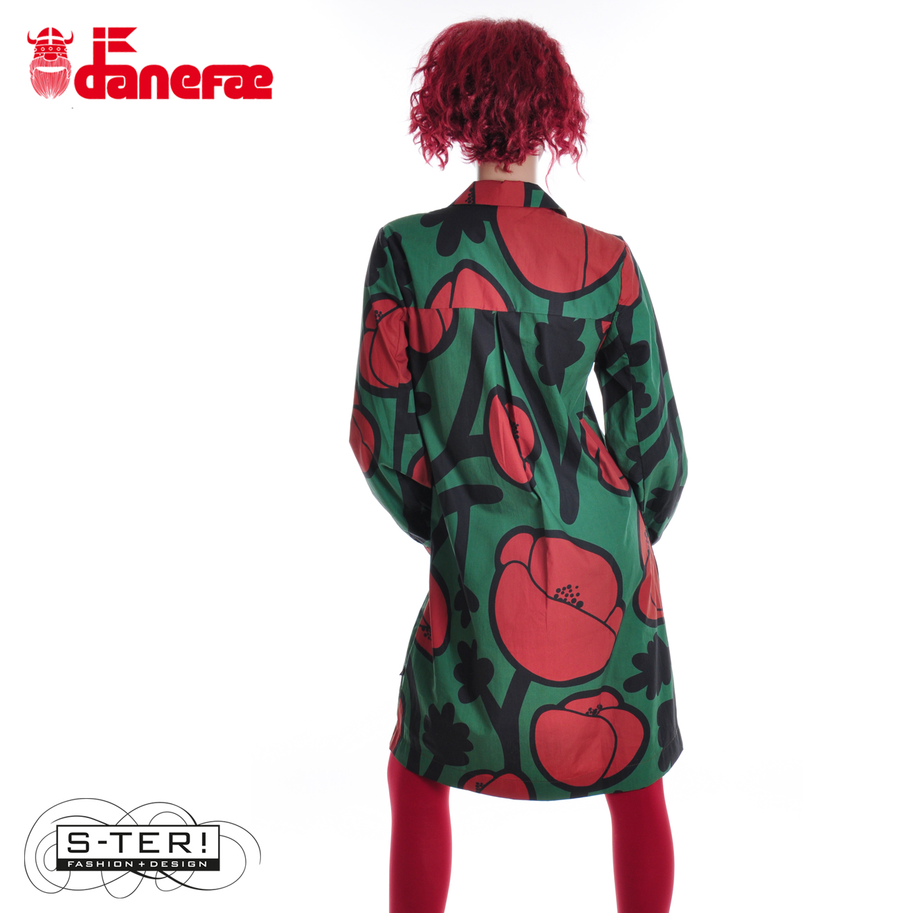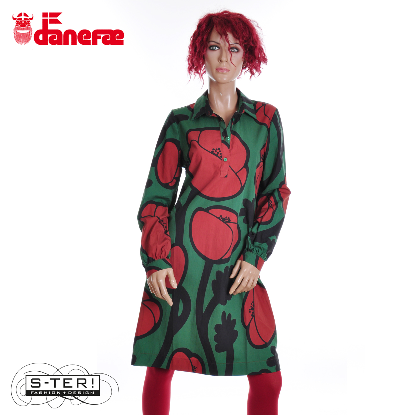 W5.46 danefae DANECARNATION POPLIN DRESS DK PINE BIG POPPY
