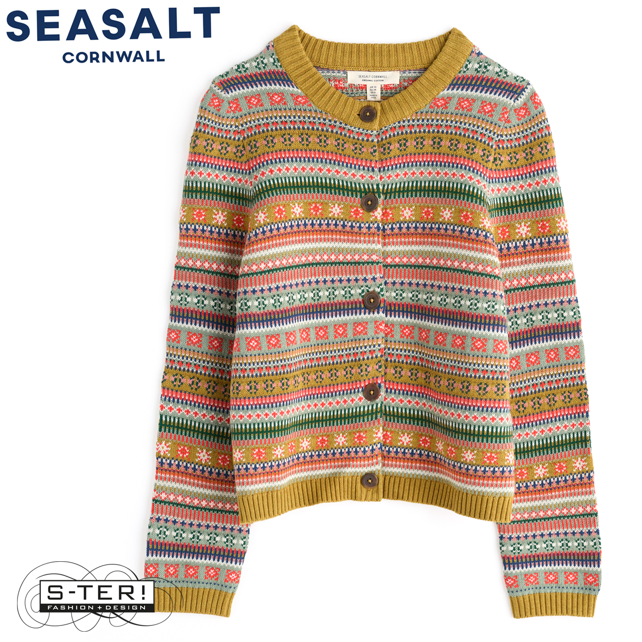 W7.11 Seasalt Cornwall COVE COTTAGE CARDIGAN CARVED RELIEF PEAR MULTI