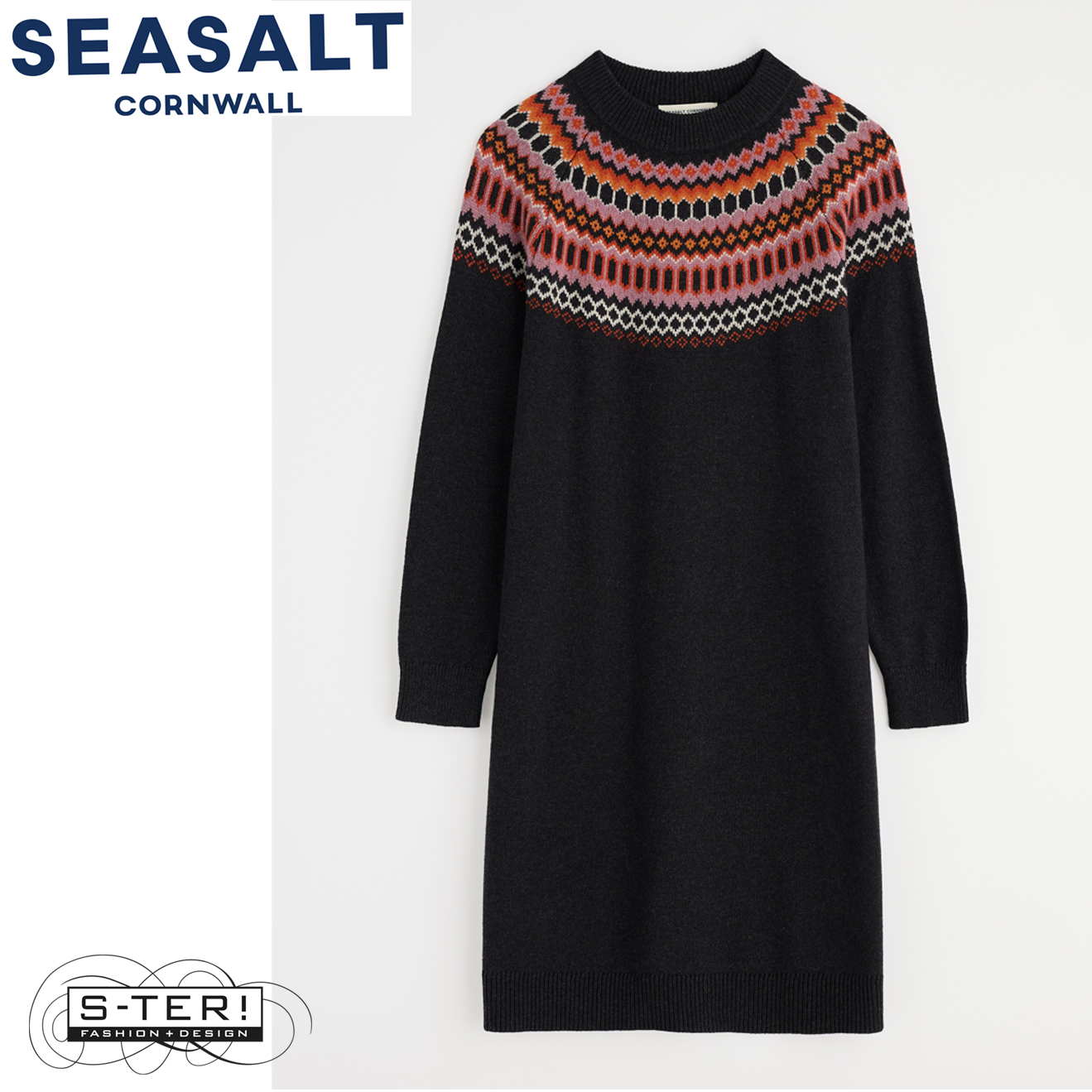 Deze jurk is een lekker los warm model met ronde hals met mooi rond gebreid patroon en lange mouwen.