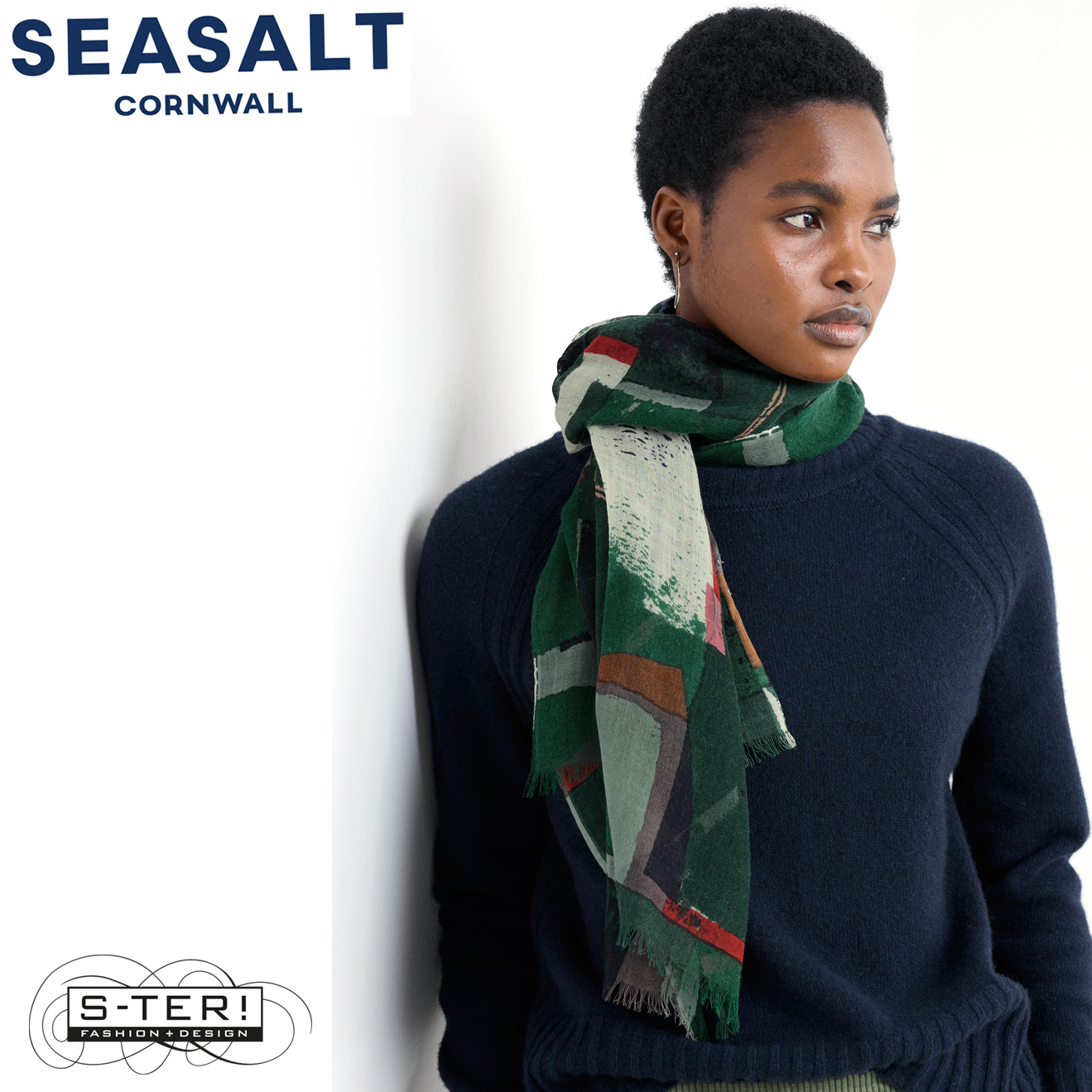 W7.98 Seasalt Cornwall PRETTY PRINTED SCARF AERIAL FIELD COPPICE