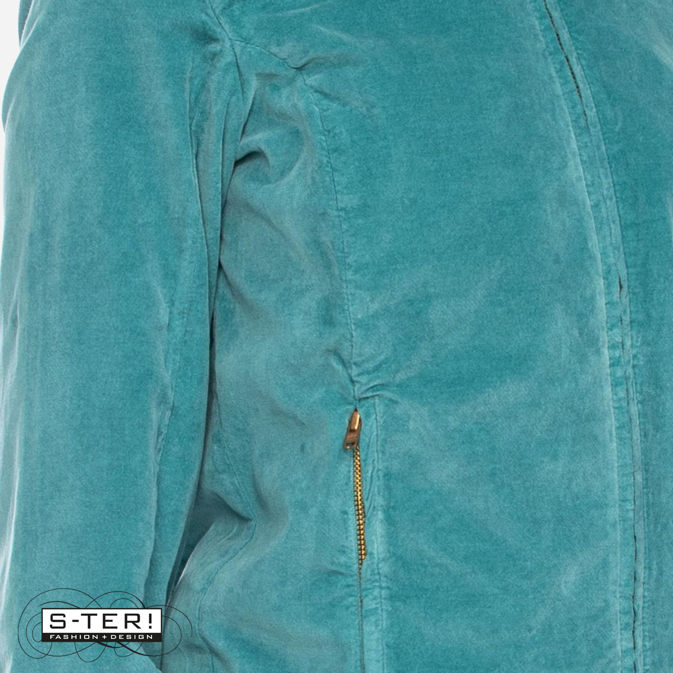 Dit fijne korte jack is een bekend model met boordjes bij hals, mouwen en zoom en rits sluiting. Deze is gemaakt van geweven zachte velours.