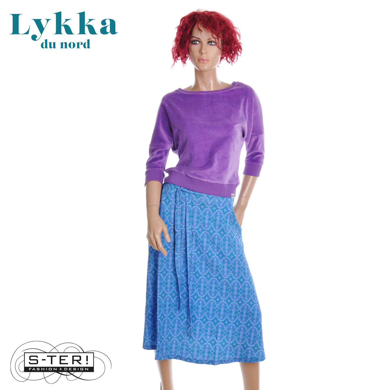 Lykka Du Nord is nieuw in de collectie en is het jongere zusje van Sorgenfri. Helemaal duurzaam en met mooie materialen past dit helemaal bij ons. Deze mooie rok is lekker lang en heeft steekzakken, een brede tailleband met strikband en het is gemaakt van zachte rekbare jersey.