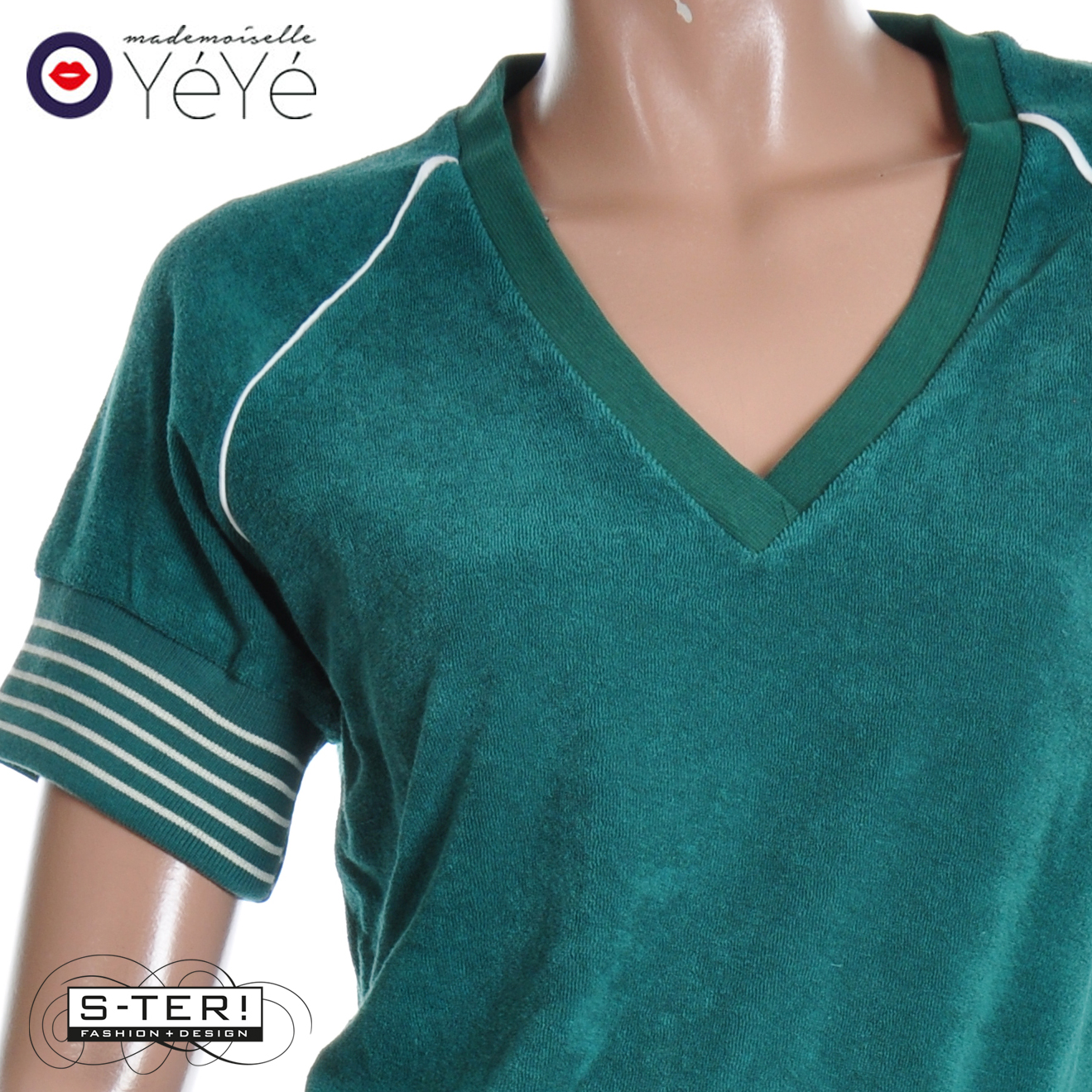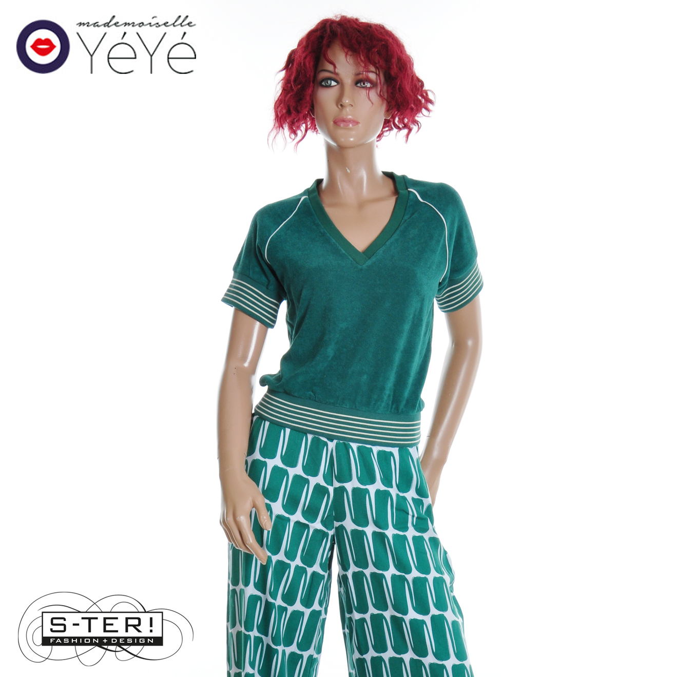 Mademoiselle Yéyé is een snoepje voor alle dames die van vintage en retro houden en is ook nog eens duurzaam. Dit leuke topje is gemaakt van zachte badstof met witte accenten en heeft een V hals en boordjes bij de mouwen en zoom.. Combineer hem bijvoorbeeld met de floating dreams trouser en het retro ralley jack.