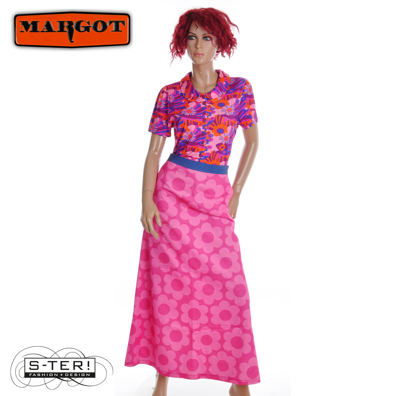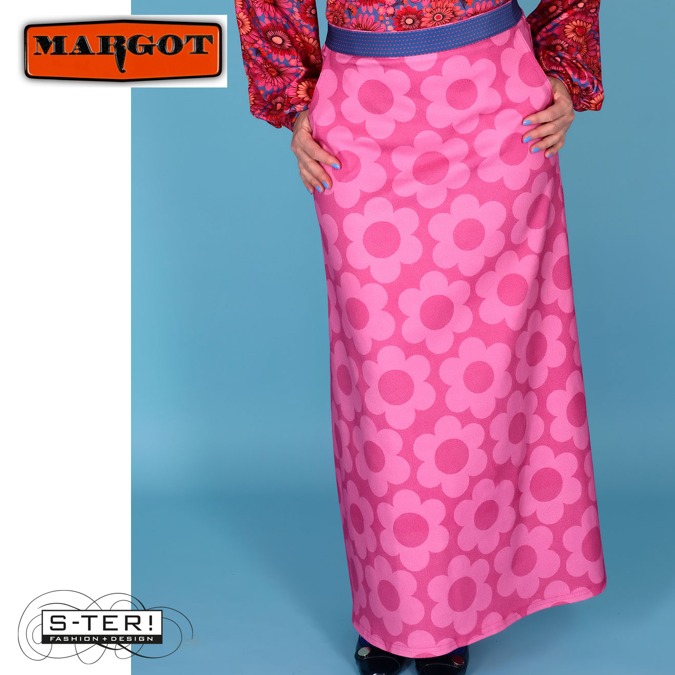 Deze gave lange rok heeft elastiek bij de taille en steekzakken en is een gerend model. Natuurlijk is hij van fijne rekbare geweven stof met mooie print.