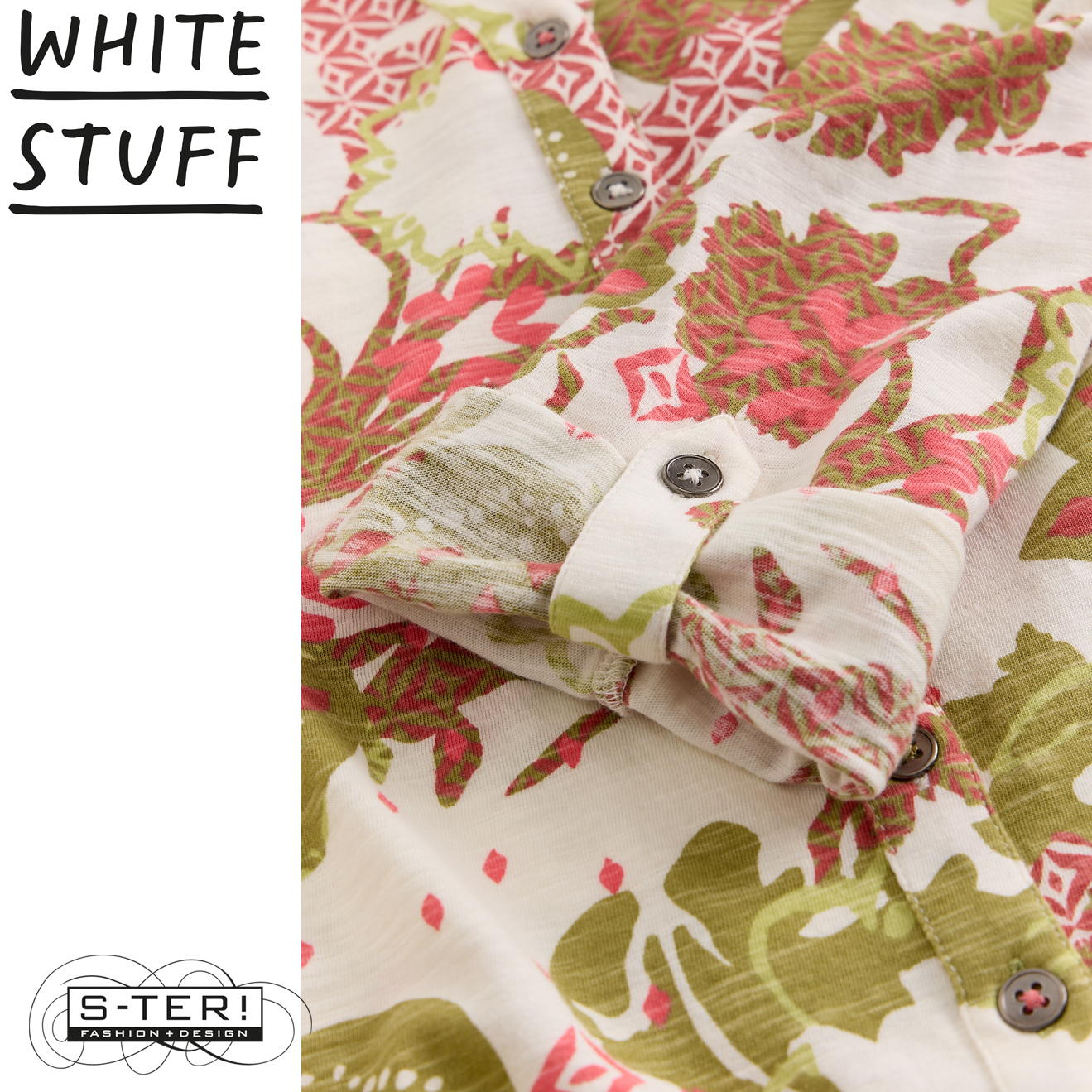 Z18.18 WHITE STUFF ANNIE JERSEY SHIRT GREEN MLT 445365