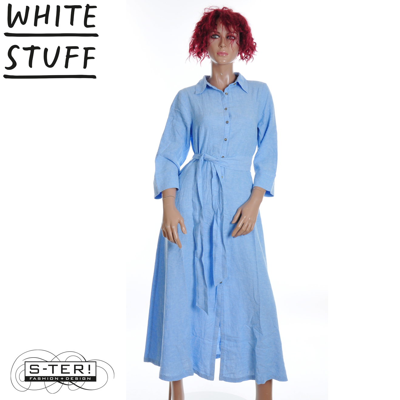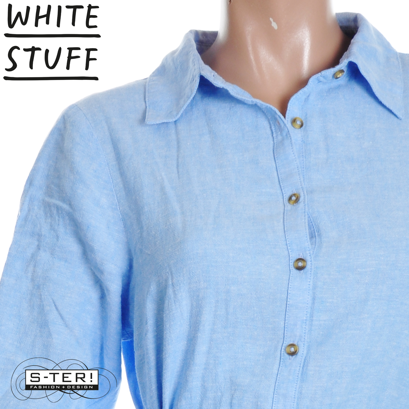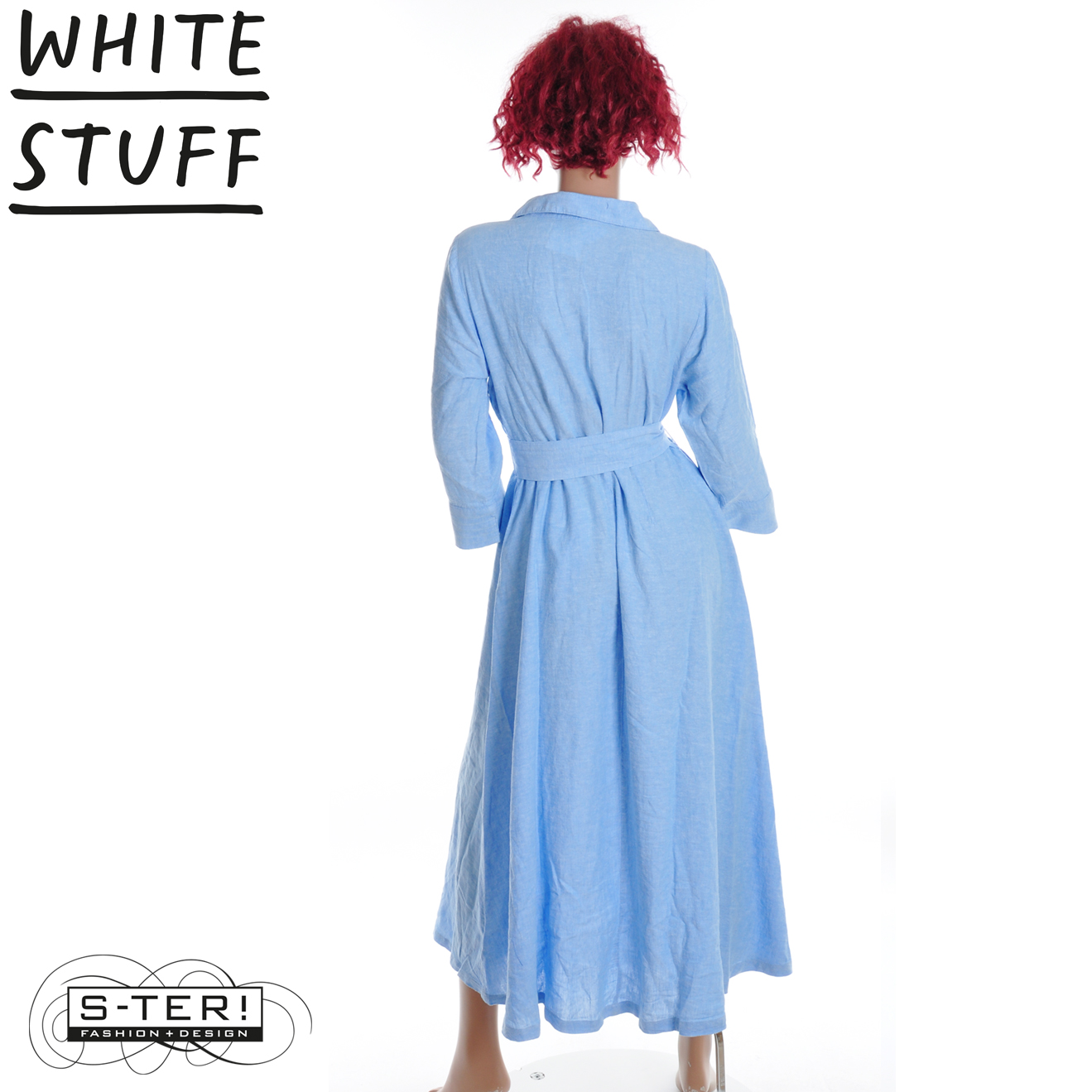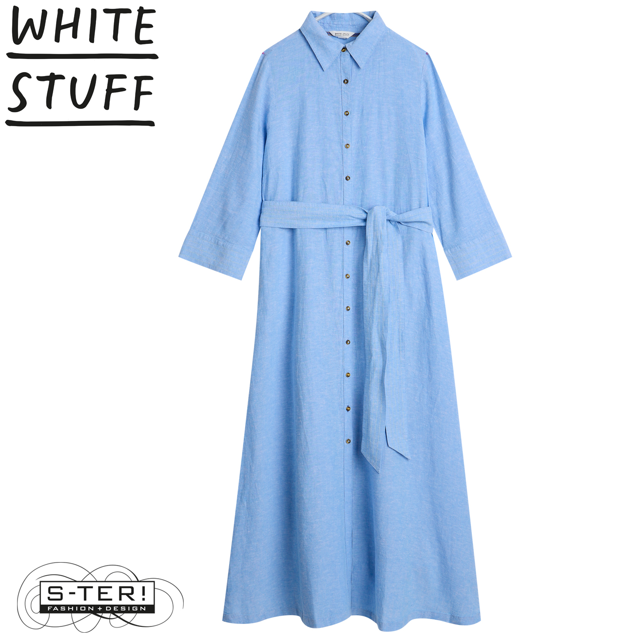 Z18.38 WHITE STUFF SOMA LINEN SHIRT DRESS 446134 CHAMB BLUE