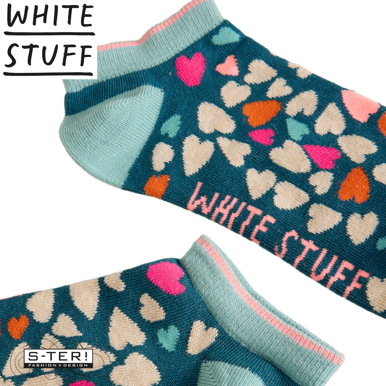 Z18.47 WHITE STUFF HEART PRINT TRAINER SOCK 445155 TEAL MLT