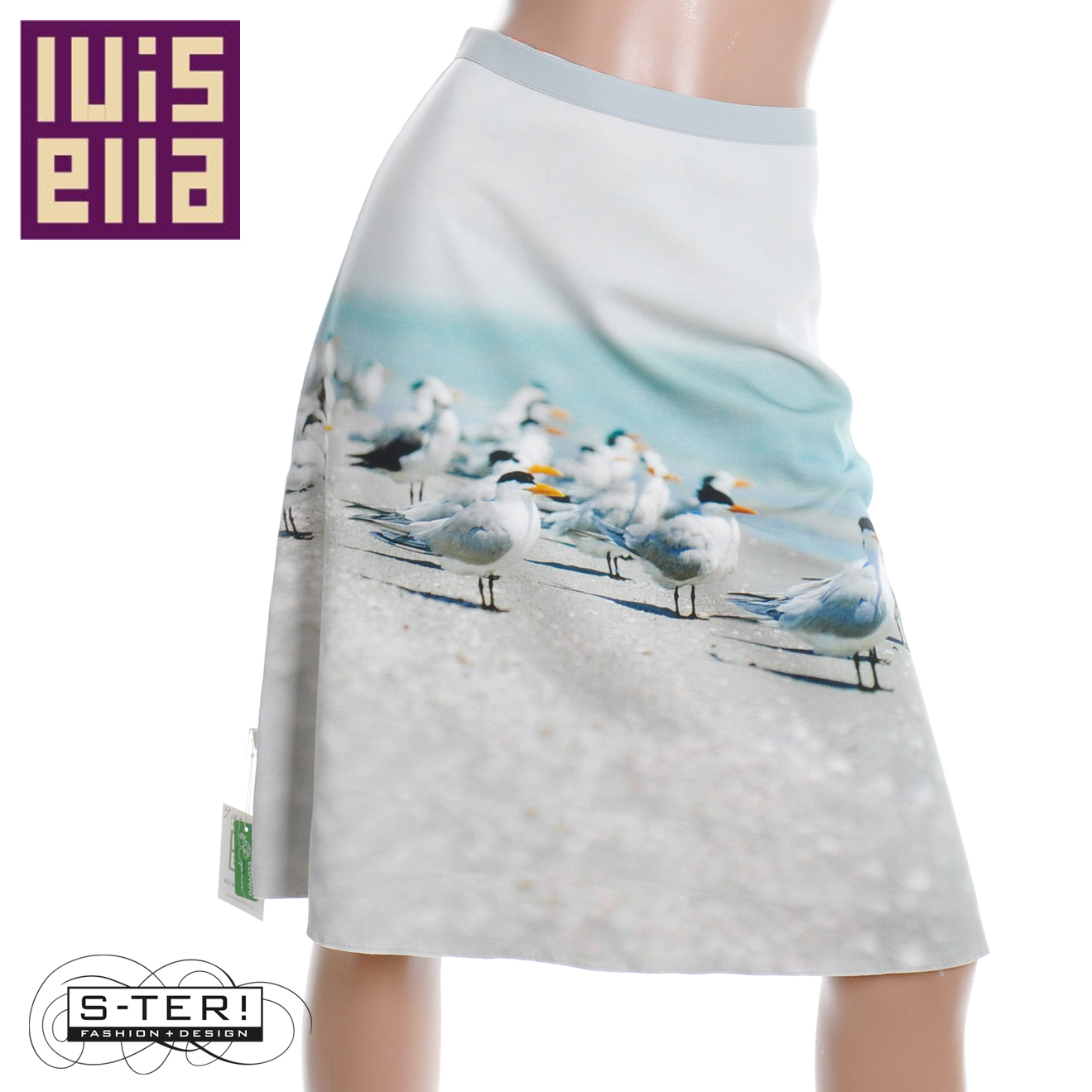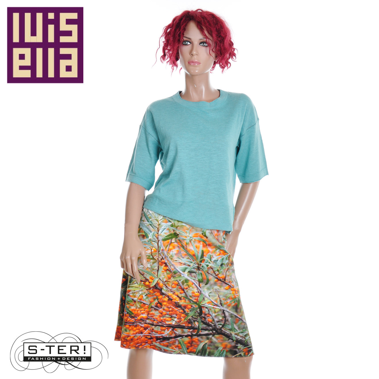 Super mooi is deze prachtige rok van Luis Ella (voorheen Icke Berlin) met zoals typerend voor dit merk weer een prachtige dubbelzijdige fotoprint voor en binnenin en natuurlijk prachtig afgewerkt. Het is een A lijn model en hij is gemaakt van zachte mooie stevigere jersey en komt tot op de knie. Deze rok kun je ook op verschillende manieren dragen zodat je kunt kiezen welke print je die dag voor wil hebben, dus je hebt altijd 2 rokken in 1. De binnenkant is dus heel anders als de buitenkant.