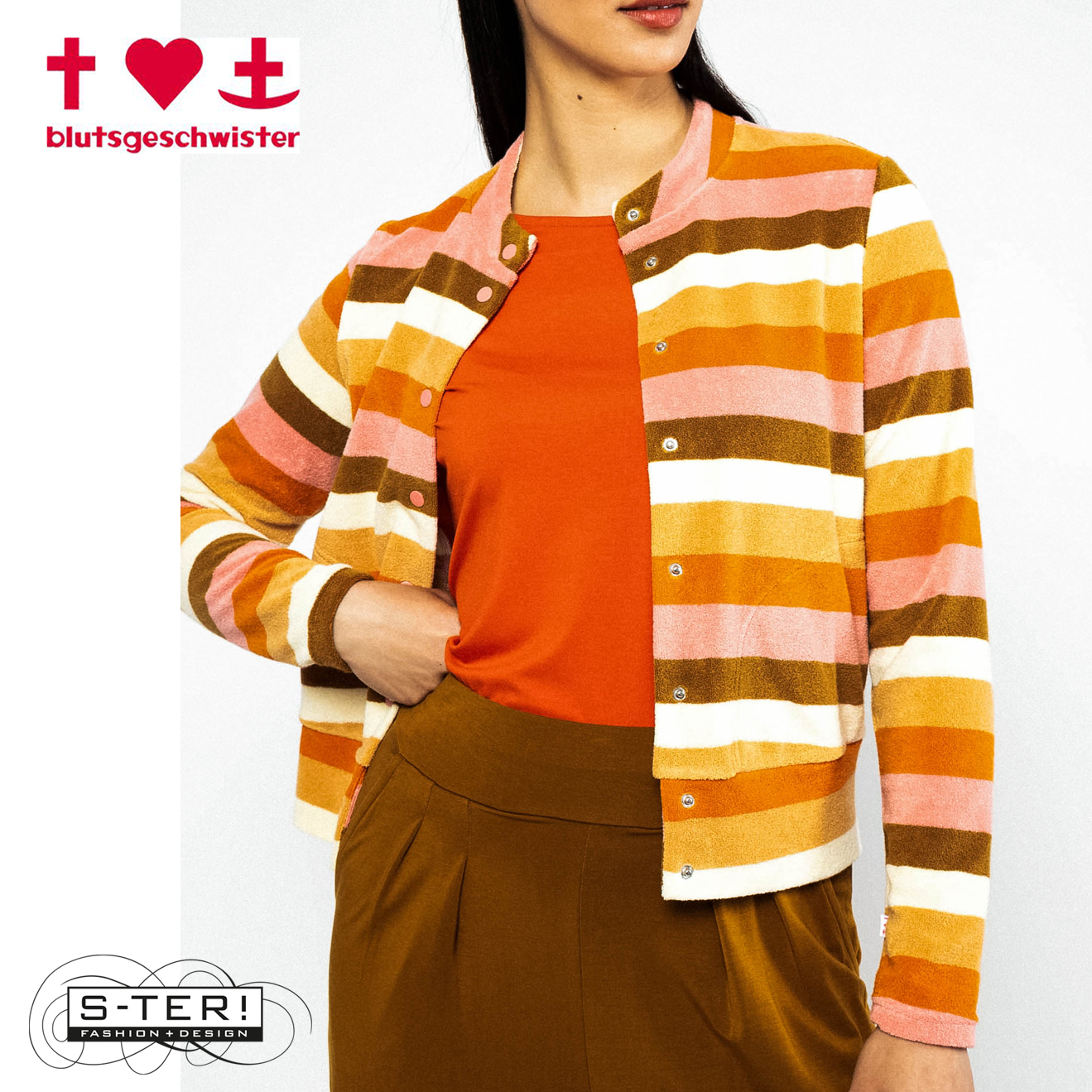 Z3.6 BLUTSGESCHWISTER TERRY ME ZIP UP 001261-030 sunny spirit stripe