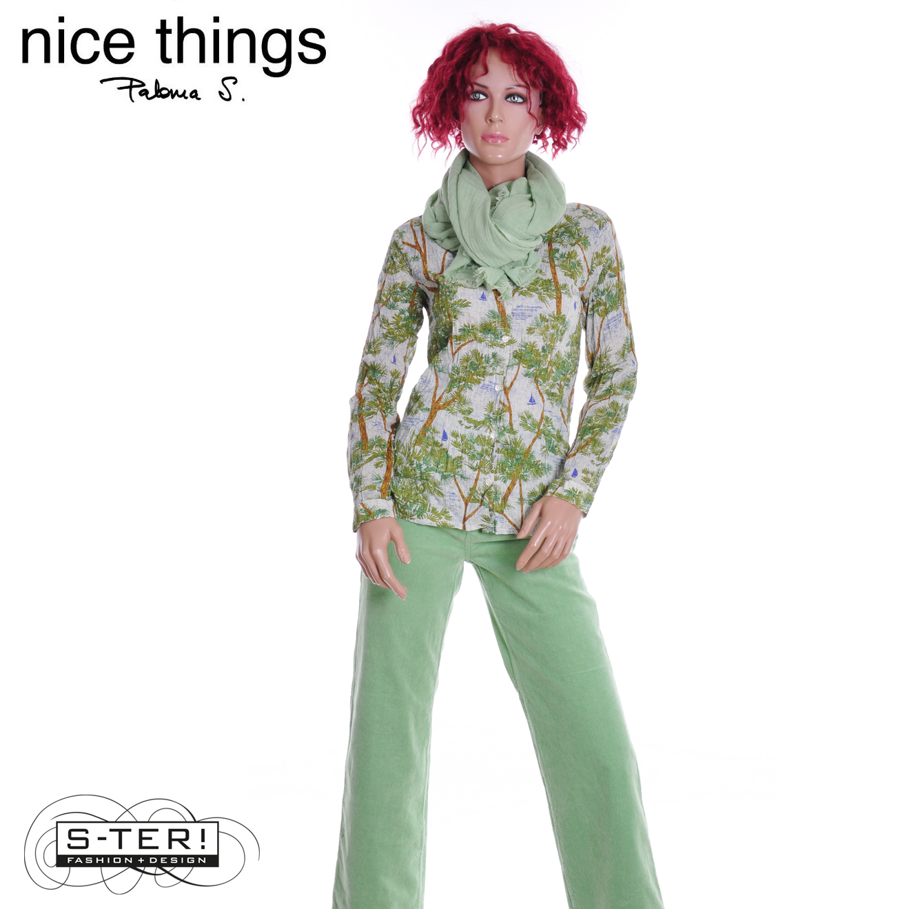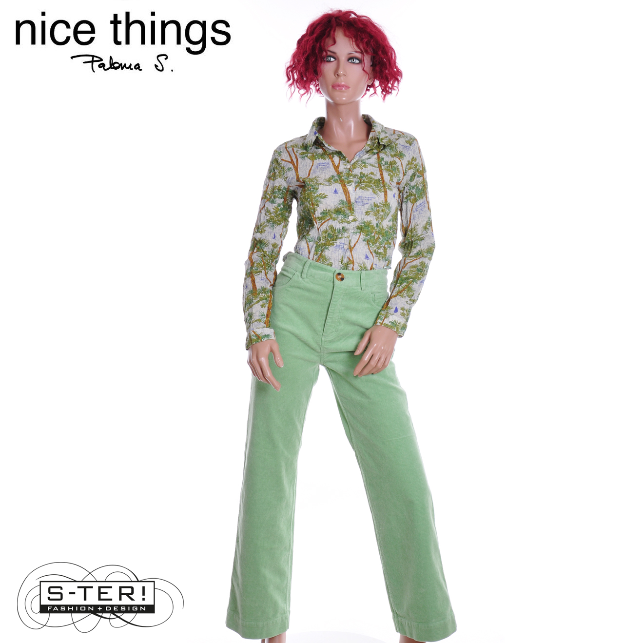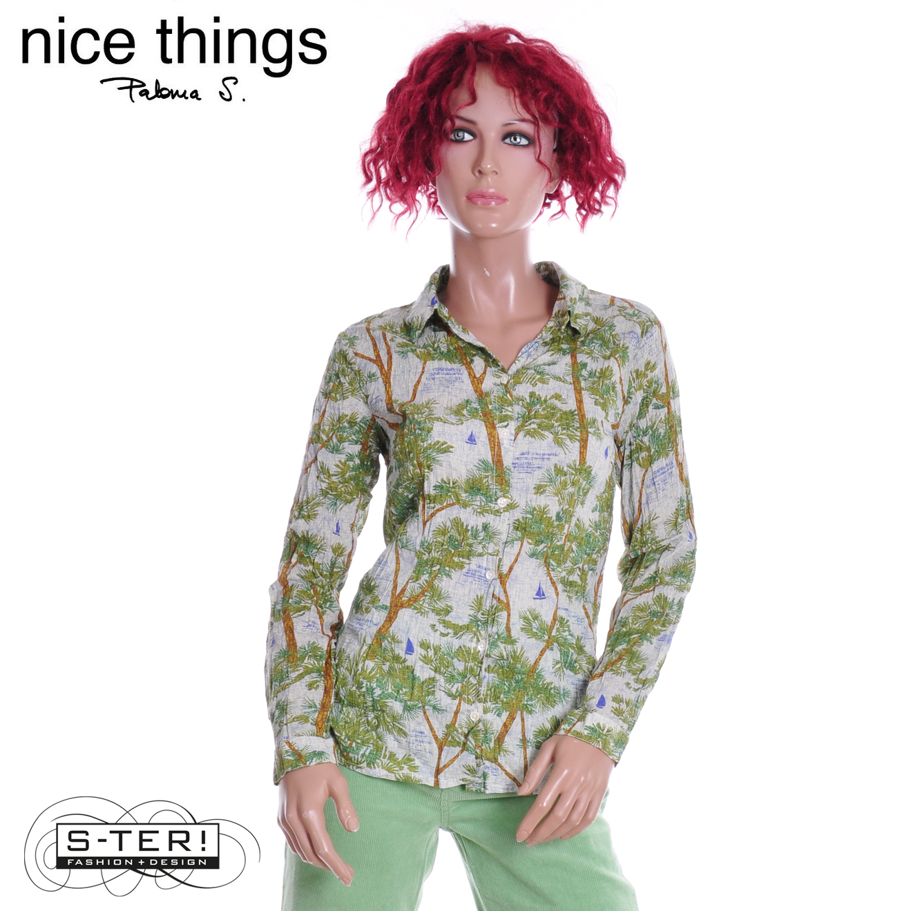 Z38.3 NICE THINGS PINE TREES PRINT BASIC SHIRT 99 WWW005 ecru