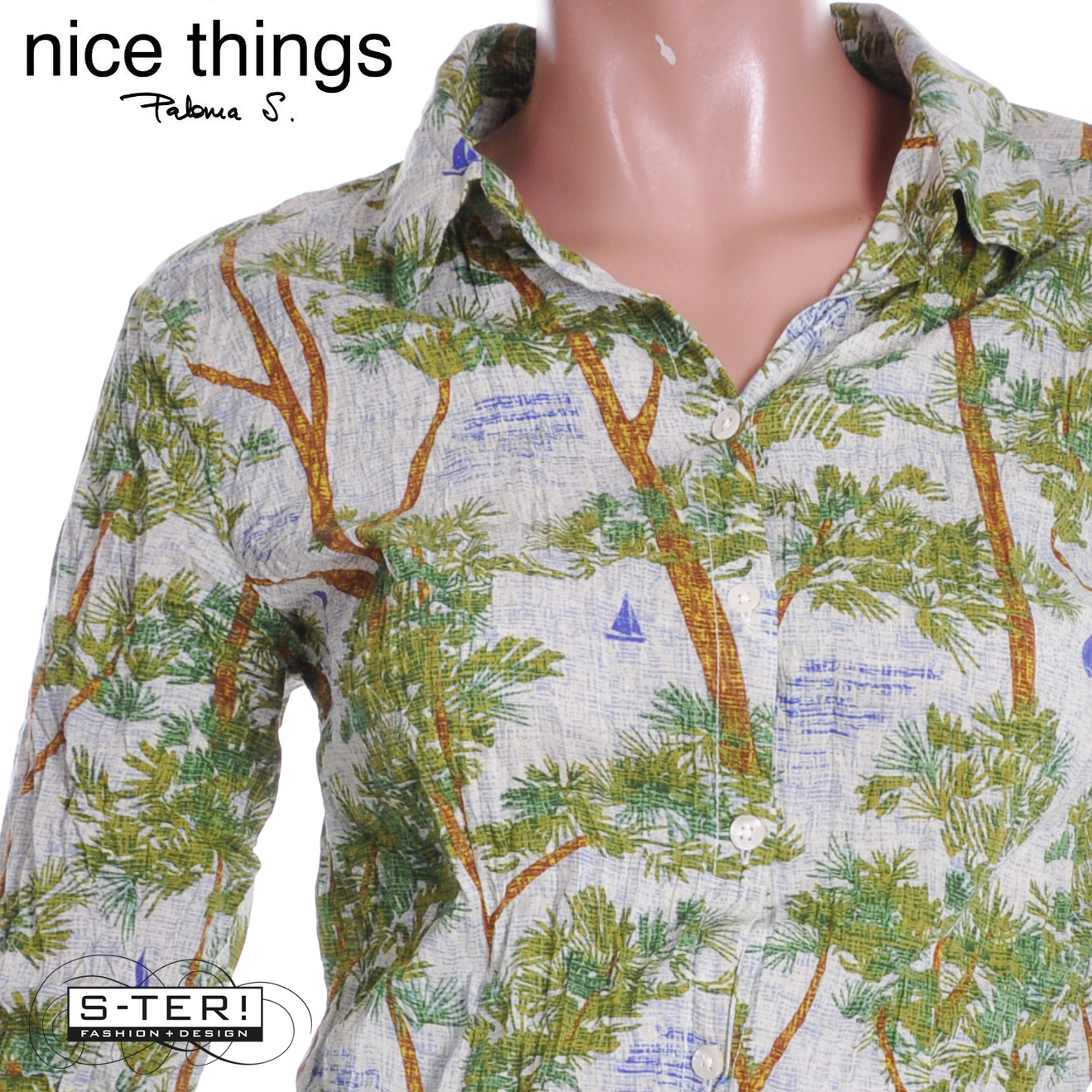 Nice Things komt uit Spanje en is echt een mooi merk met eigen handtekening. Deze fijne kreuk blouse hoef je lekker niet te strijken. Het heeft een kraag, knoopsluiting, en lange mouwen die je ook vast kunt zetten op 3/4. Het is gemaakt van zachte super luchtige geweven katoen.
