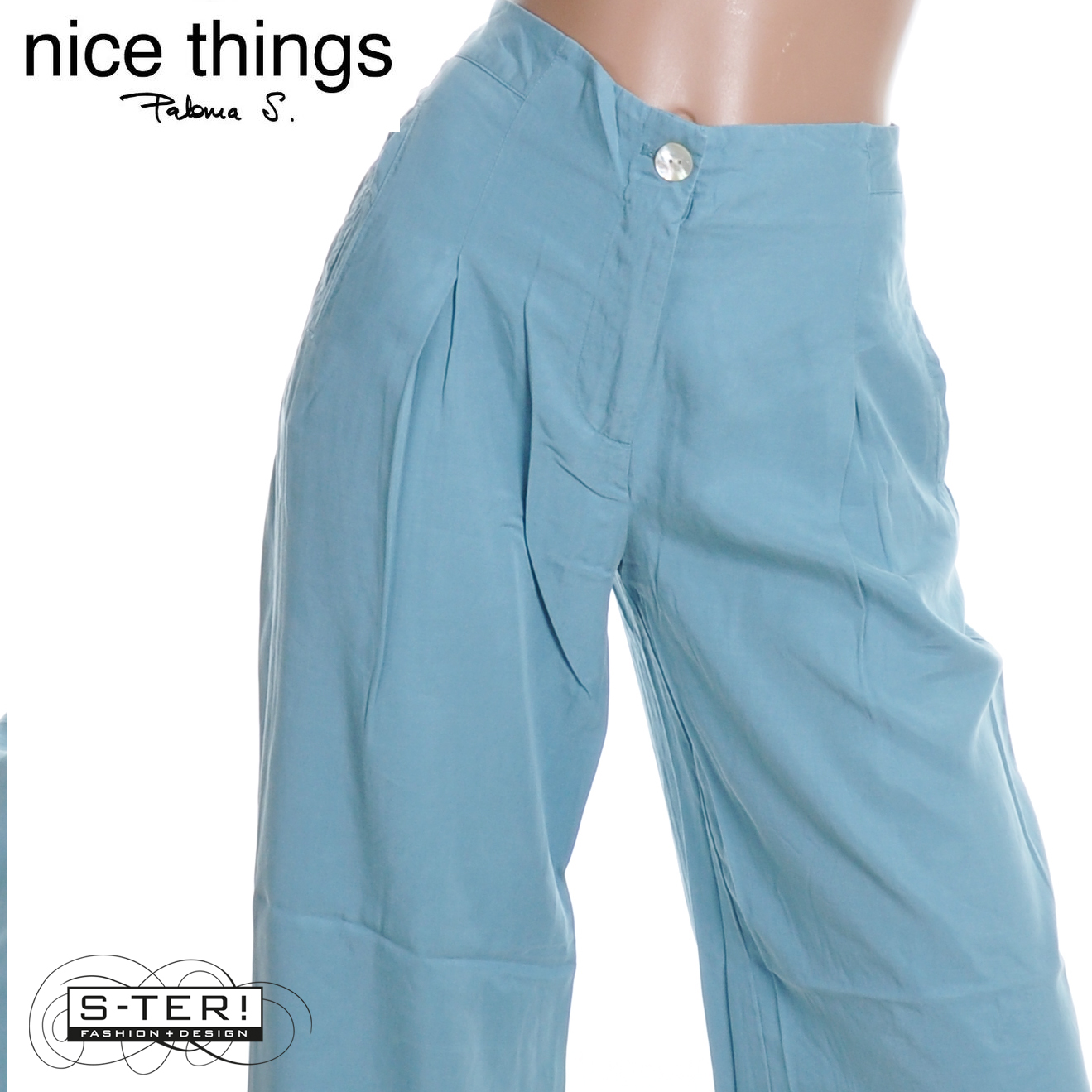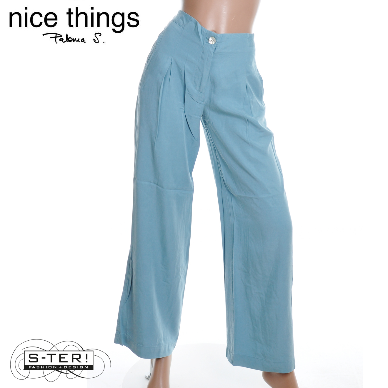 Z38.9 NICE THINGS overdyed tencel pleatfront trousers WWW081 LIGHT TURQOISE