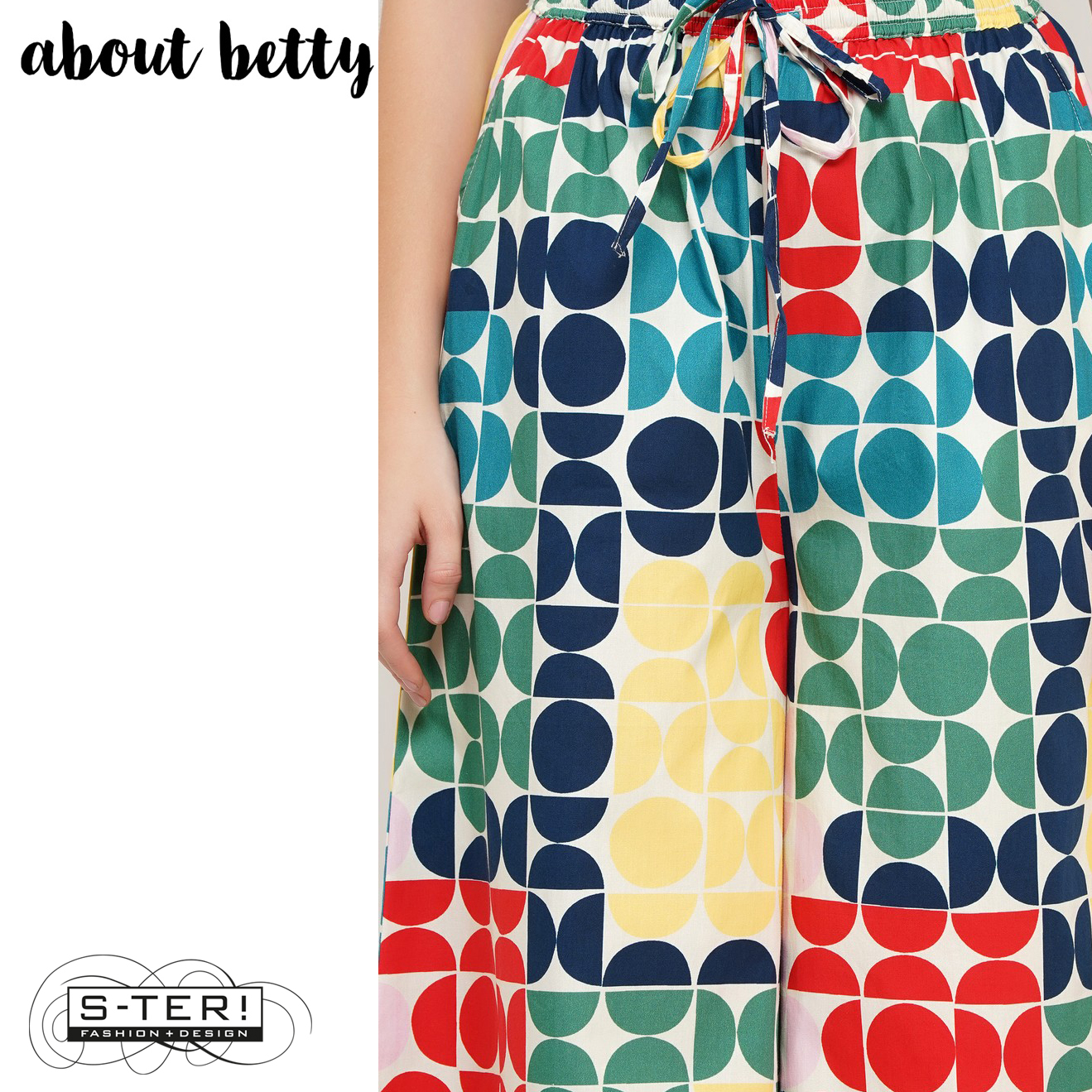 About Betty is onderdeel van Circus en komt uit Ierland. Deze mooie broek is een wijd model met elastiek in de band en steekzakken. Het is gemaakt van soepele geweven stof.