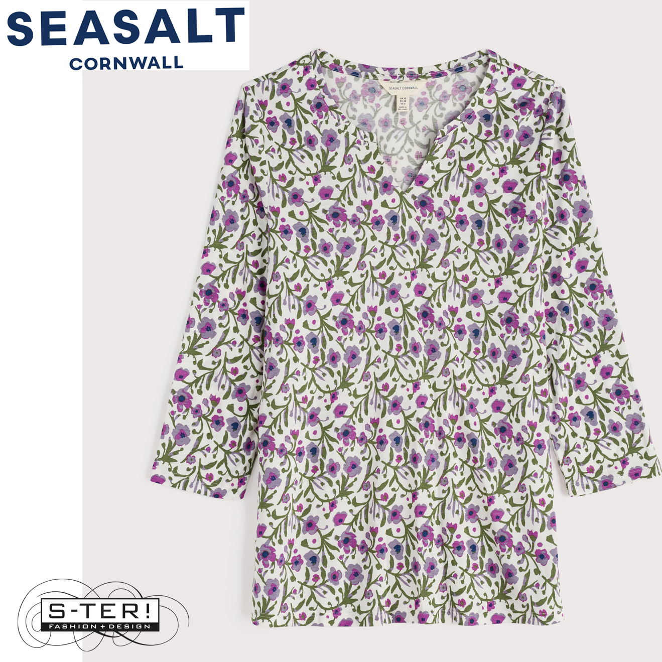 Dit fijne lange shirt heeft een ronde hals met split, 3/4 mouwen en is gemaakt van heerlijk zachte rekbare jersey.