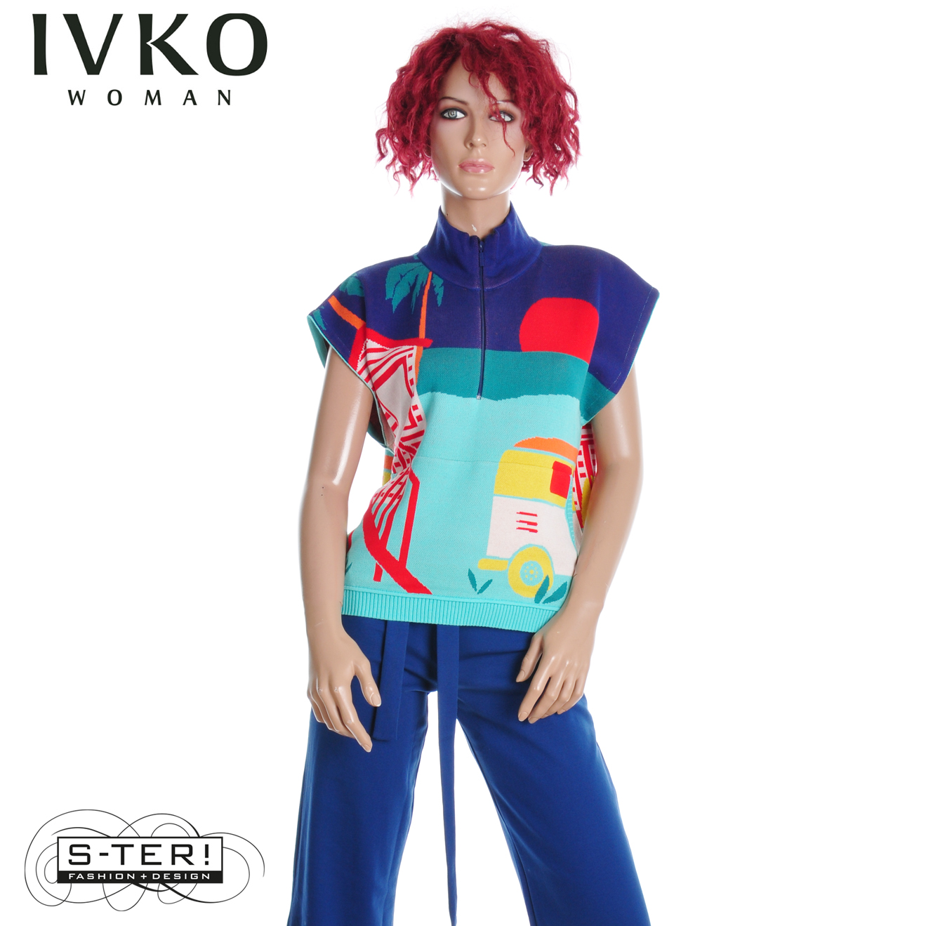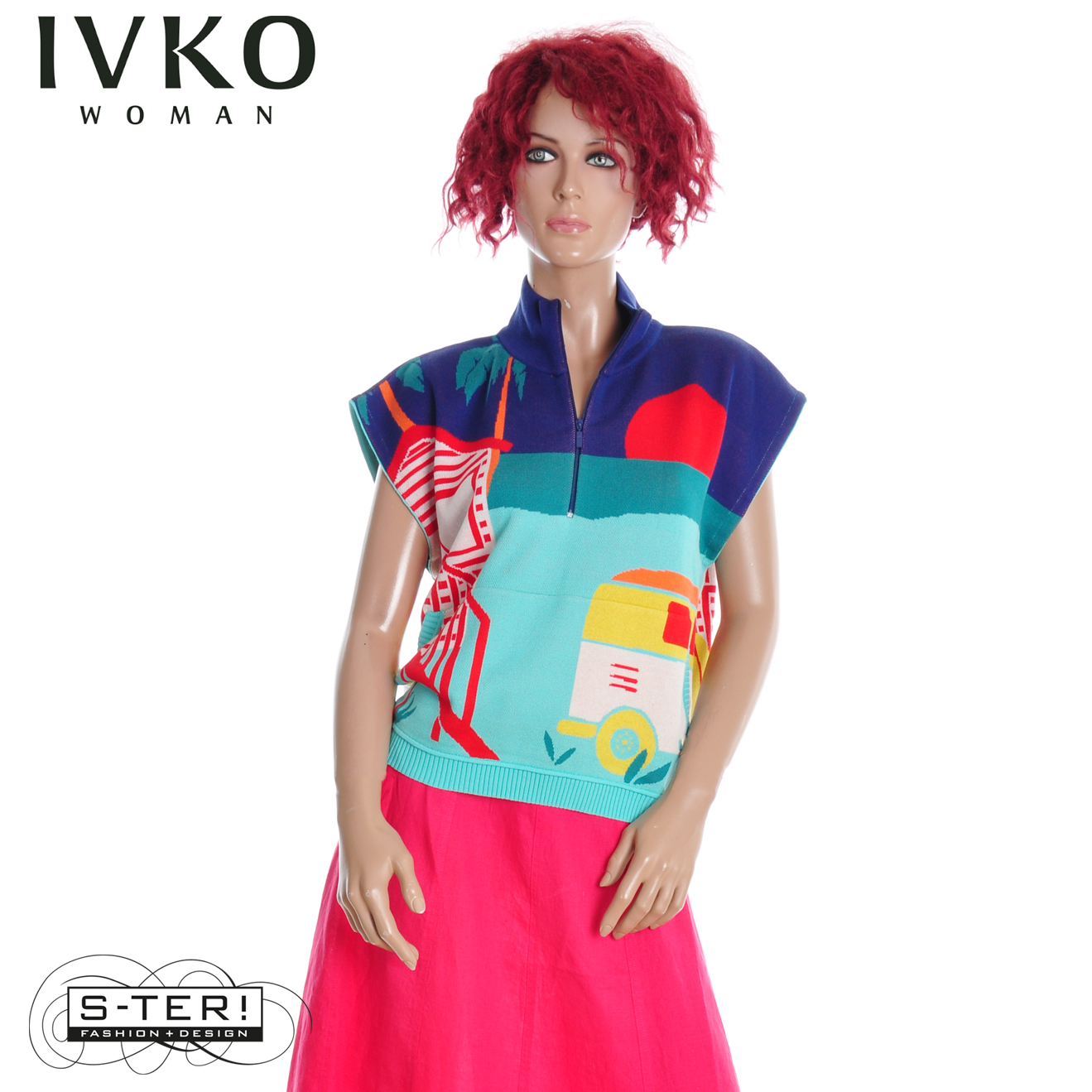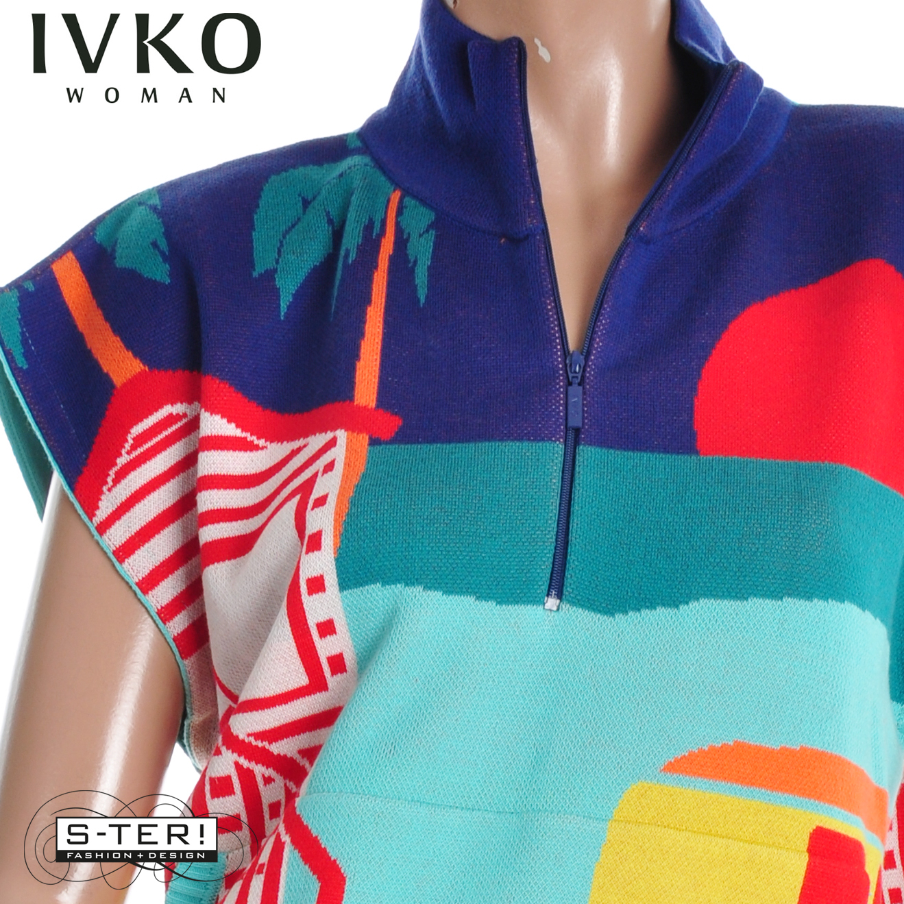 Z8.6 IVKO SLEEVELESS PULLOVER WITH ZIPPER, URBAN FUN PATTERN 261638/039 MULTICOLOUR