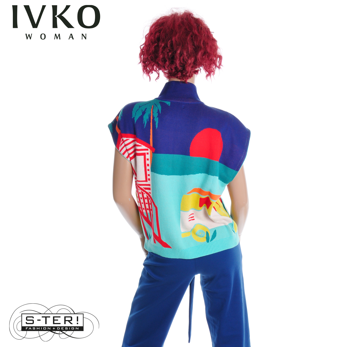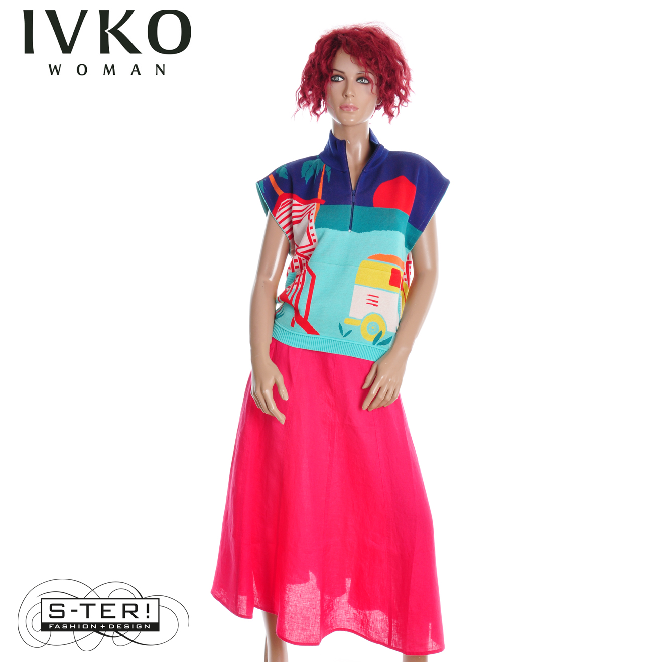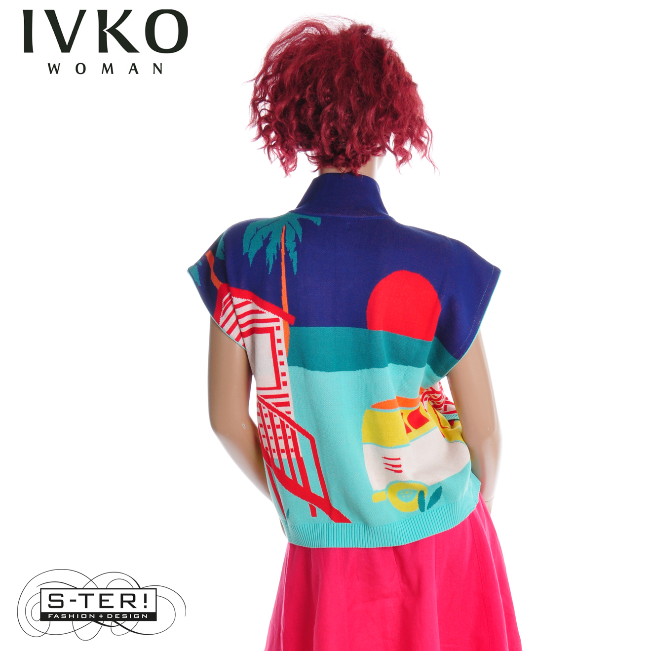 Z8.6 IVKO SLEEVELESS PULLOVER WITH ZIPPER, URBAN FUN PATTERN 261638/039 MULTICOLOUR
