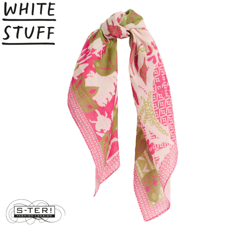 Z18.40 WHITE STUFF EMILY SQUARE PRINTED SCARF 445605 PINK PR