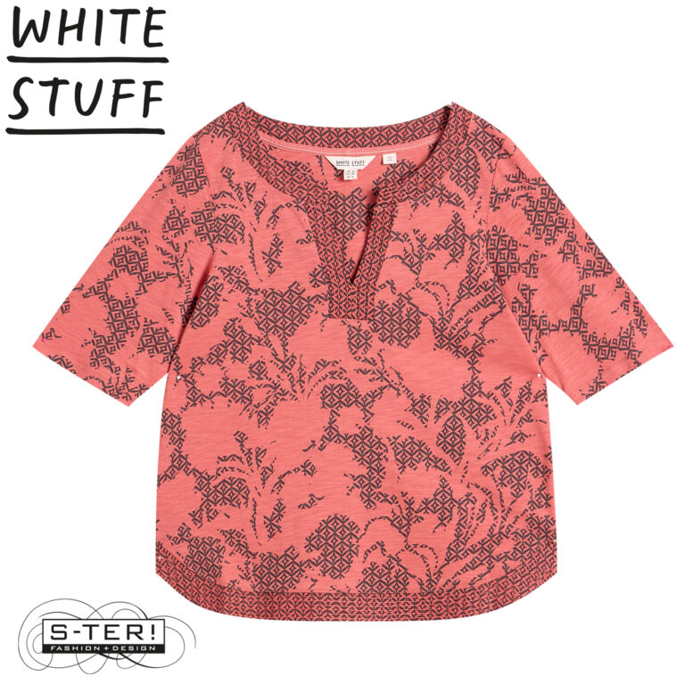 Z18.15 WHITE STUFF WEAVER NOTCH NECK TEE 445352 PINK PR